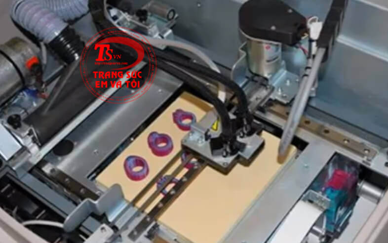 Máy tạo sáp 3 D đang vận hành quá trinh tạo sáp trang sức theo như bản vẽ.
