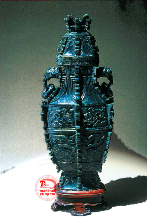 Ngoài những kiểu cắt mài như trên, đá quý còn được khắc, chạm,.. để tạo ra những tác phẩm nghệ thuật. Hình trên là cái lư kiểu Trung Quốc được khắc từ nephrite jade. |