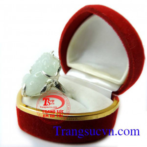 Nhẫn nữ ngọc cẩm thạch tỳ hưu mông cong