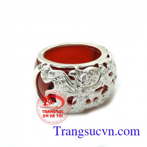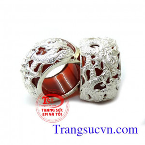 Nhẫn mã não bọc rồng mệnh Thổ