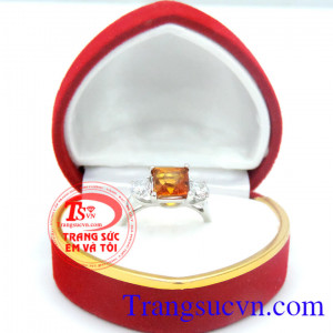 Nhẫn nữ mệnh kim, nhẫn nữ thạch anh vàng đẹp, trong suốt, nhẫn nữ vàng trắng 14k sáng, thiết kế sang trọng.Loại sản phẩm: Nhẫn nữ vàng tây gắn đá thạch anh vàng