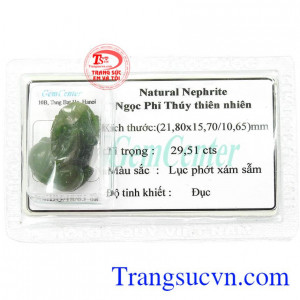 Ngọc cẩm thạch tỳ hưu TSVN chạm khắc đẹp, chất lượng ngọc đảm bảo, Tỳ Hưu ngọc phỉ thúy thiên nhiên, Ngọc cẩm thạch tỳ hưu TSVN phù hợp làm đồ tang sức, bên cạnh đó còn có ý nghĩa phong thủy, Tỳ Hưu là linh vật tượng trưng cho giàu sang, tài lộc, mang Tỳ Hưu bên người sẽ giúp chủ nhân luôn may mắn, thuận lợi trong công việc và cuộc sống.Tên đá quý: Ngọc Nephrite