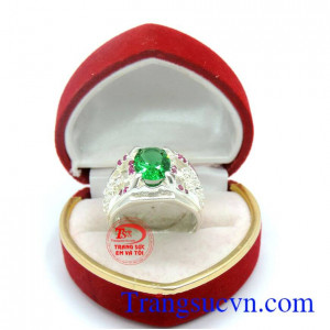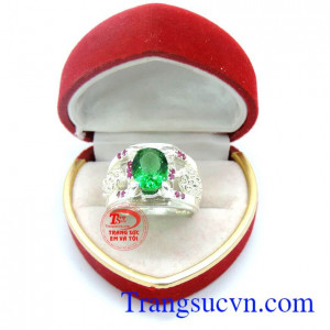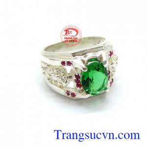Nhẫn bạc ta gắn đá xanh giá tốt