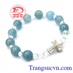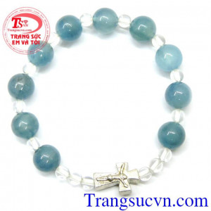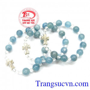 Chuỗi tràng hạt đeo bình an là trang sức may mắn dành cho người công giáo, vòng tay cho nguời mạng thủy, mạng thổ là một trong những trang sức phong thủy mang ý nghĩa cầu may mắn tình duyên, giao tiếp, mang lại bình an sự may mắn Các hạt aquamarine được đan xen hạt to hạt nhỉ và biểu tượng thánh giá bằng bạc