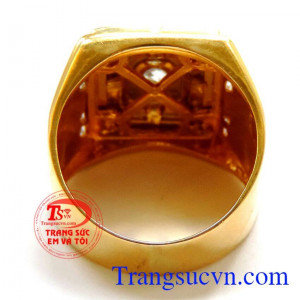 Kiểu chế tác: Nhẫn nam vàng 18k chất lượng vàng đảm bảo vàng 18k (75%Au) tinh tế và đẳng cấp uy tín