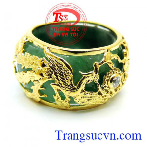 Chiếc Nhẫn ngọc rồng phượng vàng 18k chất lượng vàng đảm bảo tinh tế và sang trọng,nhẫn ngọc đeo bền đẹp,rồng phượng biểu tượng của sự cao quý và may mắn, Nhẫn ngọc đeo ngón cái, ngón giữa, ngón trỏ hoặc ngón nhẫn đều đeo được.