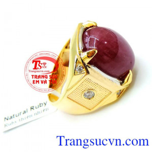 Kiểu chế tác: Nhẫn vàng gắn đá chủ Ruby thiên nhiên, Nhẫn nam vàng đảm bảo chất lượng Uy tín, Đeo hợp phong thủy