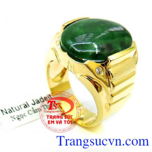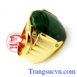 Kiểu chế tác: Nhẫn vàng gắn đá chủ Jadeite thiên nhiên, Nhẫn nam vàng đảm bảo chất lượng Uy tín, Đeo hợp phong thủy