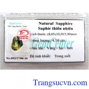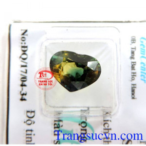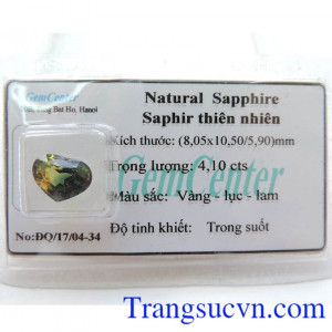 Viên Saphir Năng lượng của Tình Yêu có hình trái tim màu vàng lục thể hiện của lòng chung thủy. Saphir được coi là đá của mùa cưới, mùa hy vọng và tình yêu, nên nó thường được gắn trên những cặp nhẫn đính hôn thể hiện lòng thủy chung đi đến hôn nhân tạo dựng một gia định hạnh phúc. Sản phẩm uy tín chất lượng trên toàn thế giới.