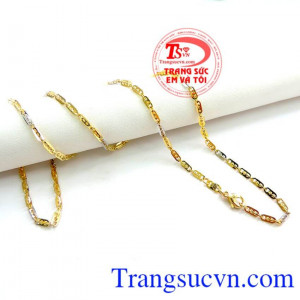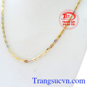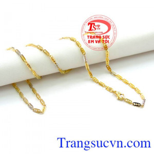 Dây vàng lồng 2 màu 10k, dây chuyền vàng 10k sản xuất, đẹp, dây chuyền thiết kế dạng mắt xích lồng với 5 mắt vàng 1 mắt trắng, dây chuyền vàng đẹp nam, nữ, dây chuyền bảo hành 6 tháng, vận chuyển toàn quốcLoại sản phẩm: Dây chuyền vàng