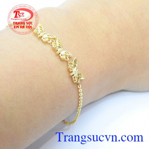Lắc tay vàng điệu đà,Lắc tay vàng được chế tác cách tỉ mỉ tới từng chi tiết,tạo điểm nhấn là những chú bướm xinh xắn.Đây chính là sản phẩm phù hợp để tặng cho những người phụ nữ xinh đẹp mà chúng ta yêu quý.Loại sản phẩm: Lắc Tay Vàng 18K