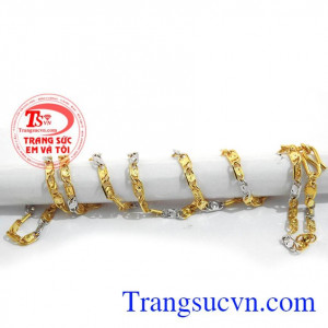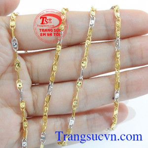 Dây chuyền nữ sang trọng, Dây chuyền nữ được kết hợp giữa vàng màu và vàng trắng.Sản phẩm mang lại sự tinh tế,sang trọng.Dây chuyền thiết kế theo kiểu móc khiến cho sản phẩm sống động hơn.Loại sản phẩm: Dây chuyền vàng