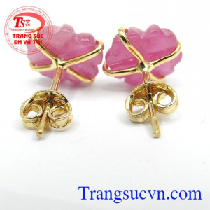 Hình ảnh: Hoa tai Ruby cỏ 4 lá, Hoa tai vàng đá quý