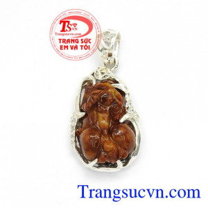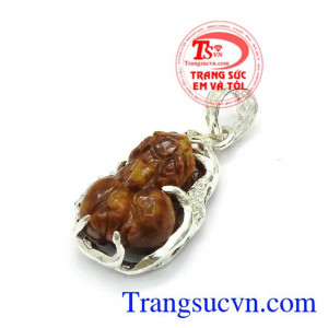 Kiểu chế tác: Mặt tỳ hưu cẩm thạch bọc bạc tinh tế, đeo hợp phong thủy