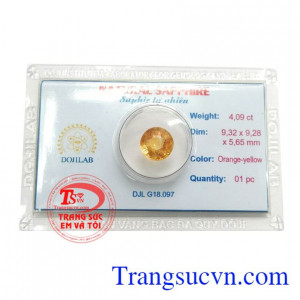 Viên sapphire vàng cam là sản phẩm đá sapphire đẹp, được ép vỉ cẩn thận, có giấy kiểm định. Viên sapphire vàng cam mang lại nhiều may mắn, tiền tài cho người đeo. Công ty trang sức em và tôi chuyên cung cấp các sản phẩm đá quý, đá phong thủy, vàng, bạc, ngọc trai, giao hàng trên toàn quốc.