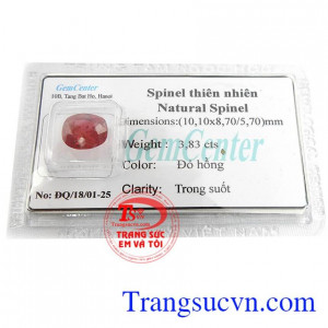 Viên đá quý Spinel đỏ hồng là sản phẩm đá quý thiên nhiên cao cấp, sản phẩm mang lại nhiều may mắn cho người đeo. Viên đá quý Spinel đỏ hồng phù hợp để làm nhẫn nam, nhẫn nữ, lắc tay, dây chuyền.Loại đá quý: Spinel thiên nhiên