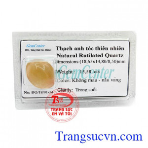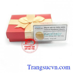 Viên thạch anh tóc vàng nâu là sản phẩm ép vỉ, có giấy kiểm định. Thạch Anh Tóc Vàng là một dòng đá cao cấp trong dòng họ đá thạch anh tóc. Được nhiều người yêu thích bởi màu vàng kèm theo hiệu ứng quang học tượng trưng cho hào quang ánh mặt trời mang nguồn năng lượng tích cực được ứng dụng nhiều trong chữa bệnh và phong thủy. Với Ý nghĩa của tóc vàng là biểu tượng của sự phát triển, sinh sản, sự thịnh vượng, thăng tiến, giúp chủ nhân thăng hoa trong đường tình duyên, hạnh phúc lứa đôi được yên ấm, bền vững.Loại sản phẩm: Thạch anh tóc