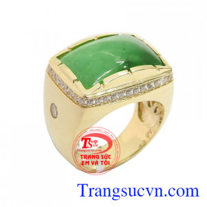 Kiểu chế tác: Nhẫn vàng gắn đá chủ Jadeite thiên nhiên, Nhẫn nam vàng đảm bảo chất lượng Uy tín, Đeo hợp phong thủy