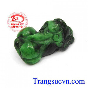 Tỳ hưu cẩm thạch tấn lộc, truyền thuyết xưa kể rằng, tỳ hưu là một trong chín người con của rồng, có miệng rộng, mông to và không có hậu môn. Bới đó nên tiền tài chỉ bị hút vào mà không đi ra, sẽ giúp cho gia chủ giàu có thịnh vượng hơn. Sản phẩm chế tác từ ngọc cẩm thạch sáng bóng, có độ bền tương đối tốt, thích hợp làm mặt dây hoặc mặt nhẫn, và không hề kén tuổi cũng như người dùng.Tỳ hưu cẩm thạch tấn lộc.