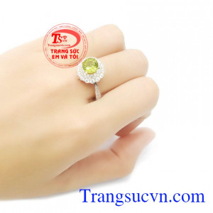 Nhẫn nữ peridot nữ hoàng là sản phẩm nhẫn nữ được gắn đá thiên nhiên, có giấy kiểm định đá quý