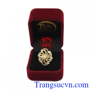 Sản phẩm là sự kết hợp hoàn hảo từ vàng tây 10k và đá Cz nhỏ thành hình hoa bắt sáng lấp lánh tạo cho chiếc nhẫn càng thêm nổi bật