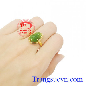 Kiểu chế tác: Nhẫn vàng màu tinh tế gắn tỳ hưu đá, mang lại may mắn và hộ mệnh, Nhẫn nữ vàng tây dành cho phái đẹp