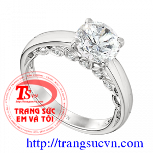 Mẫu nhẫn trên được làm từ vàng 14k, kim cương nhân tạo 6 mm