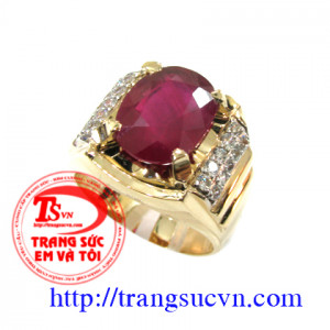 Nhẫn nam vàng tây 18k gắn đá ruby thiên nhiên với kiểu dáng chế tác đẹp phong cách và đẳng cấp cùng