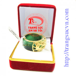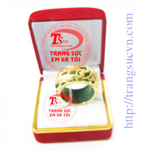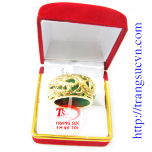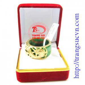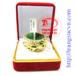 - Nhẫn ngọc được bọc vàng 14k chạm khắc hình rồng