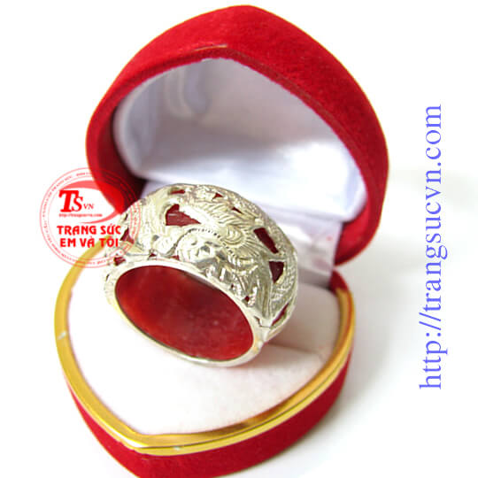 - Nhẫn ngọc chạm rồng uốn quanh mặt nhẫn ngọc cẩm thạch thiên nhiên đẹp, với chế tác đẹp, hợp thời