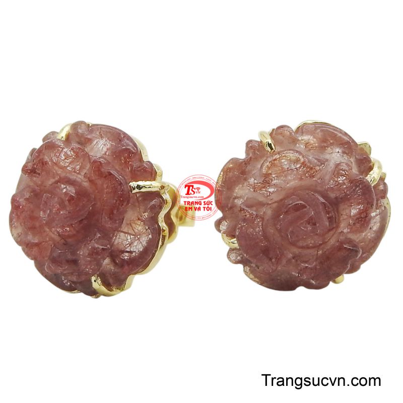 Hoa tai vàng 10K gắn đá thạch anh tóc đỏ hình bông hoa hồng như một món quà ý nghĩa