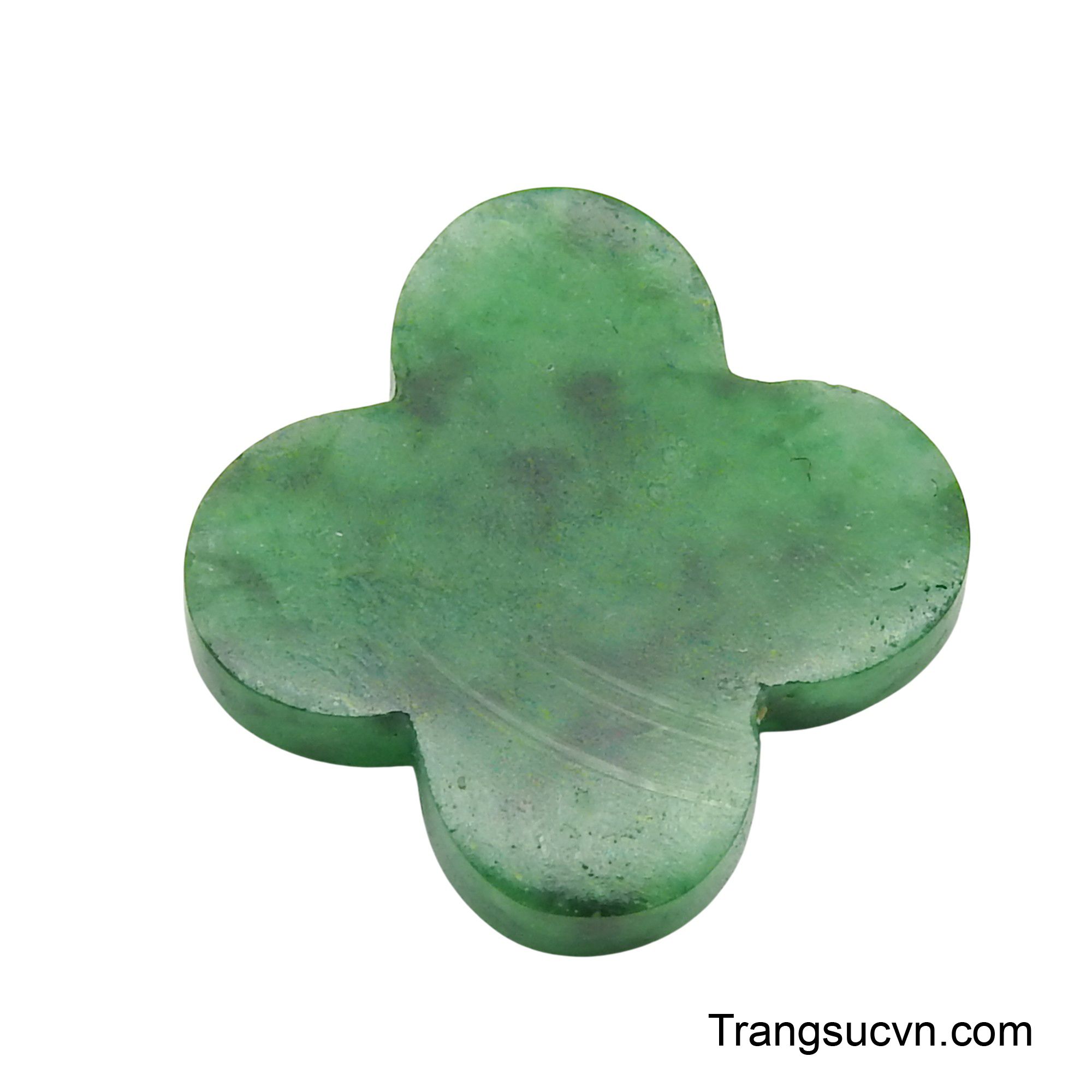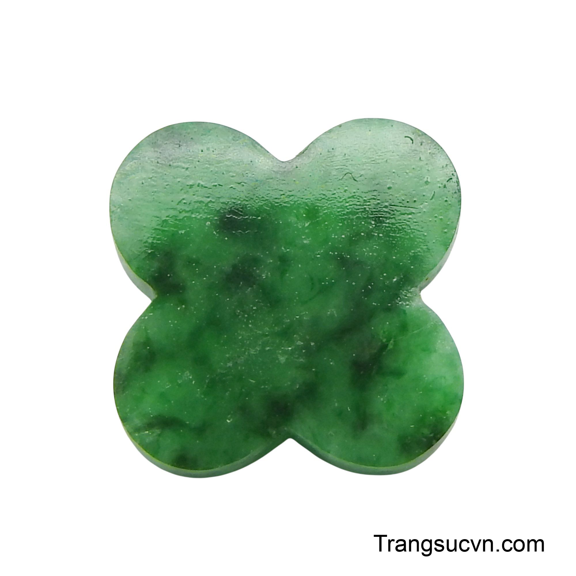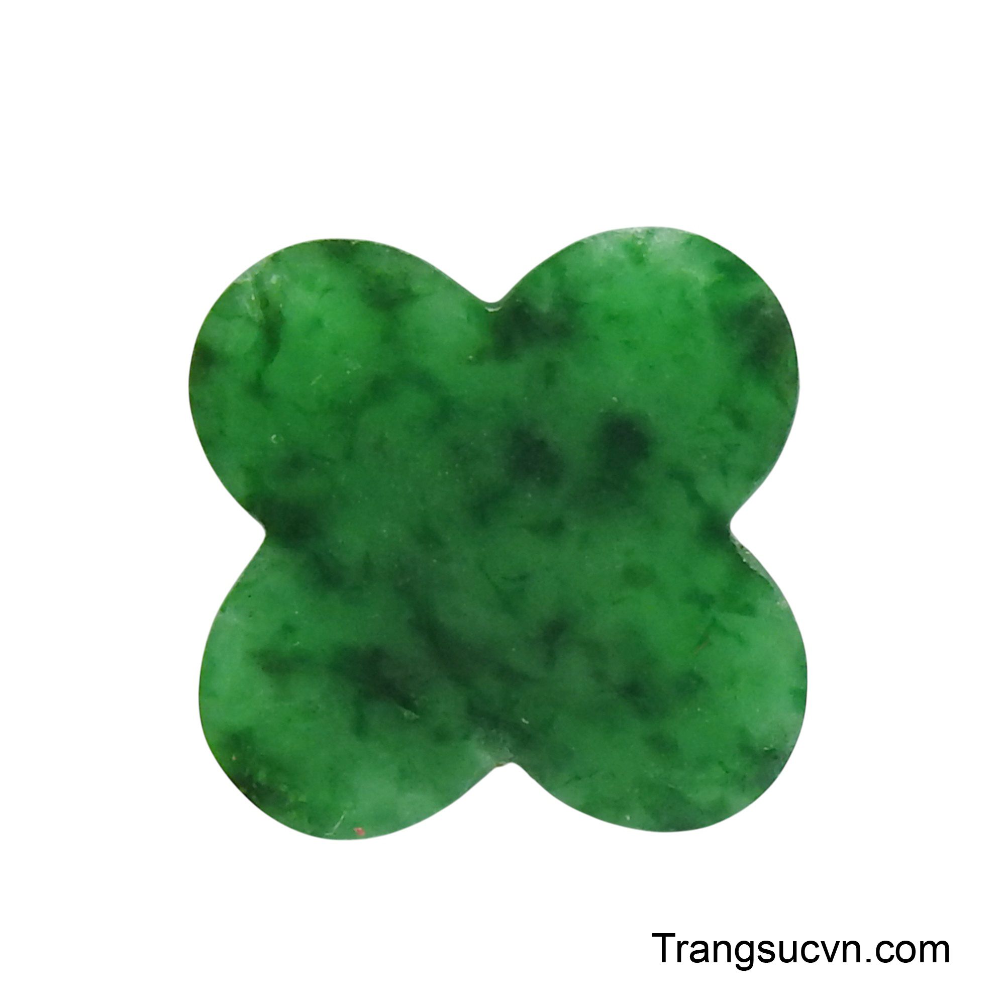 Mặt ngọc thiên nhiên đẹp với tạo hình cỏ bốn lá trơn, mang một vẻ đẹp tối giản nhưng vẫn đầy ý nghĩa. Viên ngọc có sắc xanh lục bảo tự nhiên, với các vệt màu đậm nhạt độc đáo, thể hiện sự tinh khiết và độ bền của đá quý. Thiết kế trơn phẳng này làm nổi bật chất ngọc và sự trọn vẹn của hình dáng. Đây là sự lựa chọn lý tưởng để gắn vào mặt dây chuyền hoặc hoa tai. Khi được bọc viền vàng hoặc vàng trắng, nó sẽ trở thành một món trang sức phong thủy tinh tế, mang đến may mắn, bình an và sự thịnh vượng cho người đeo.