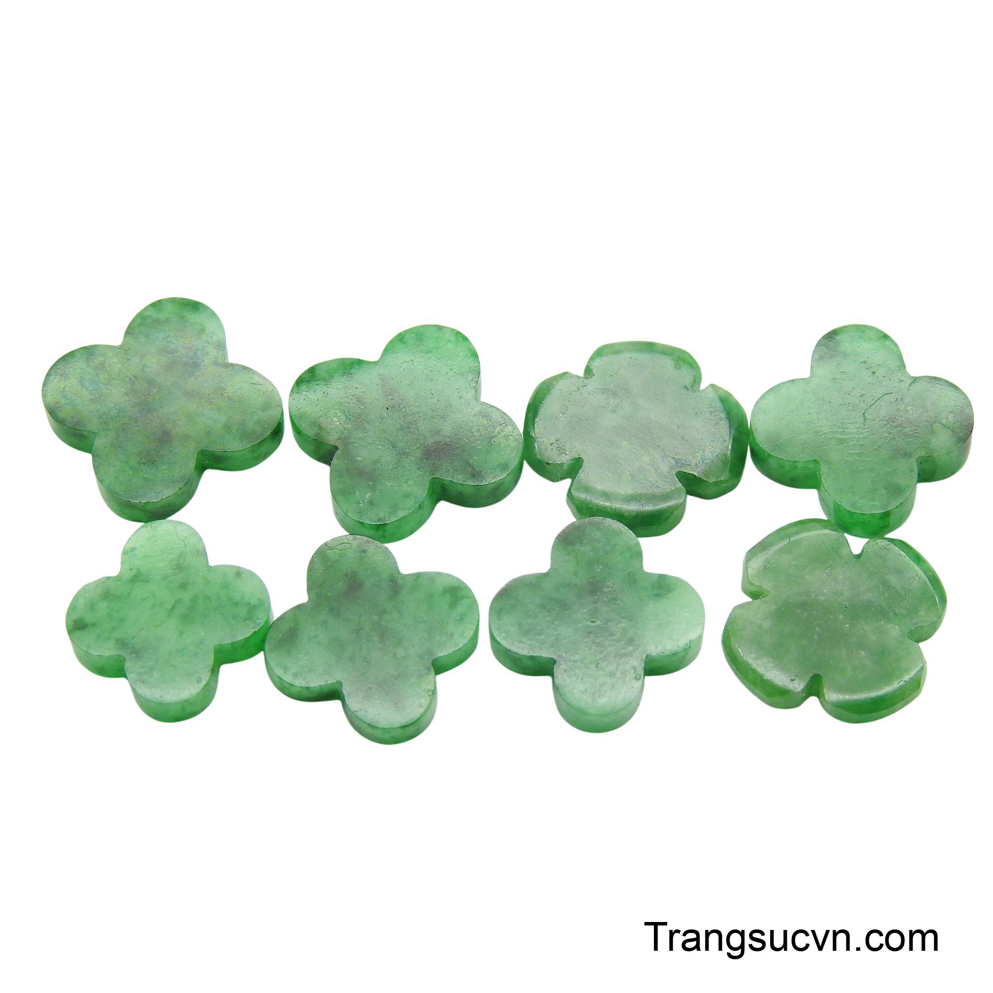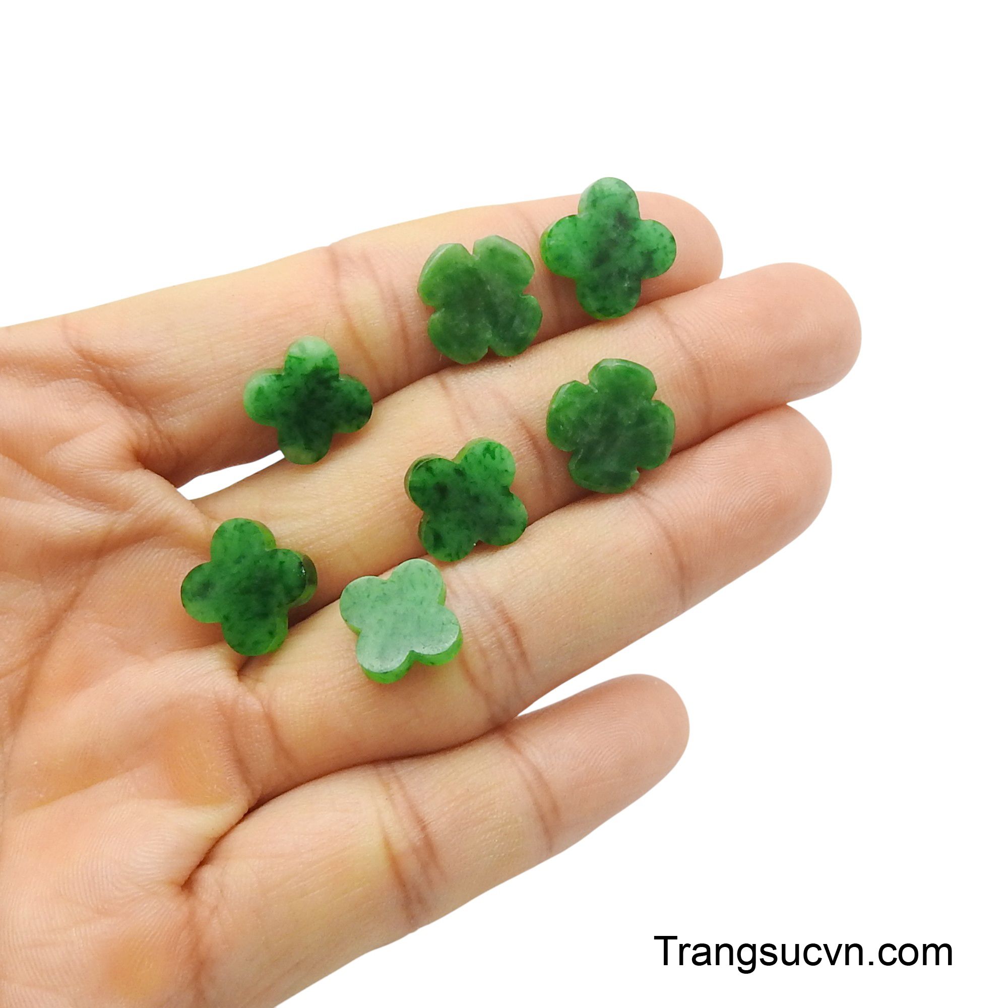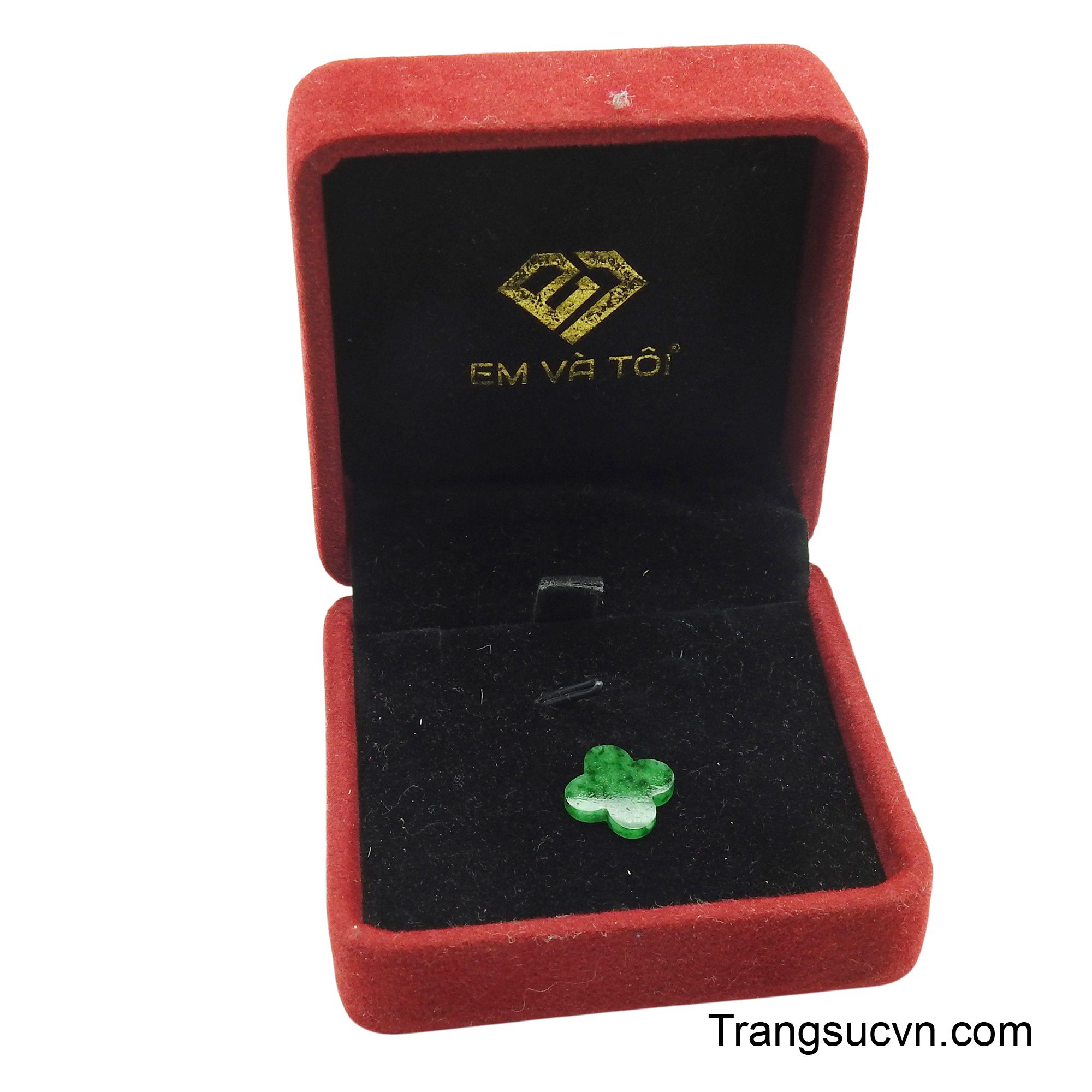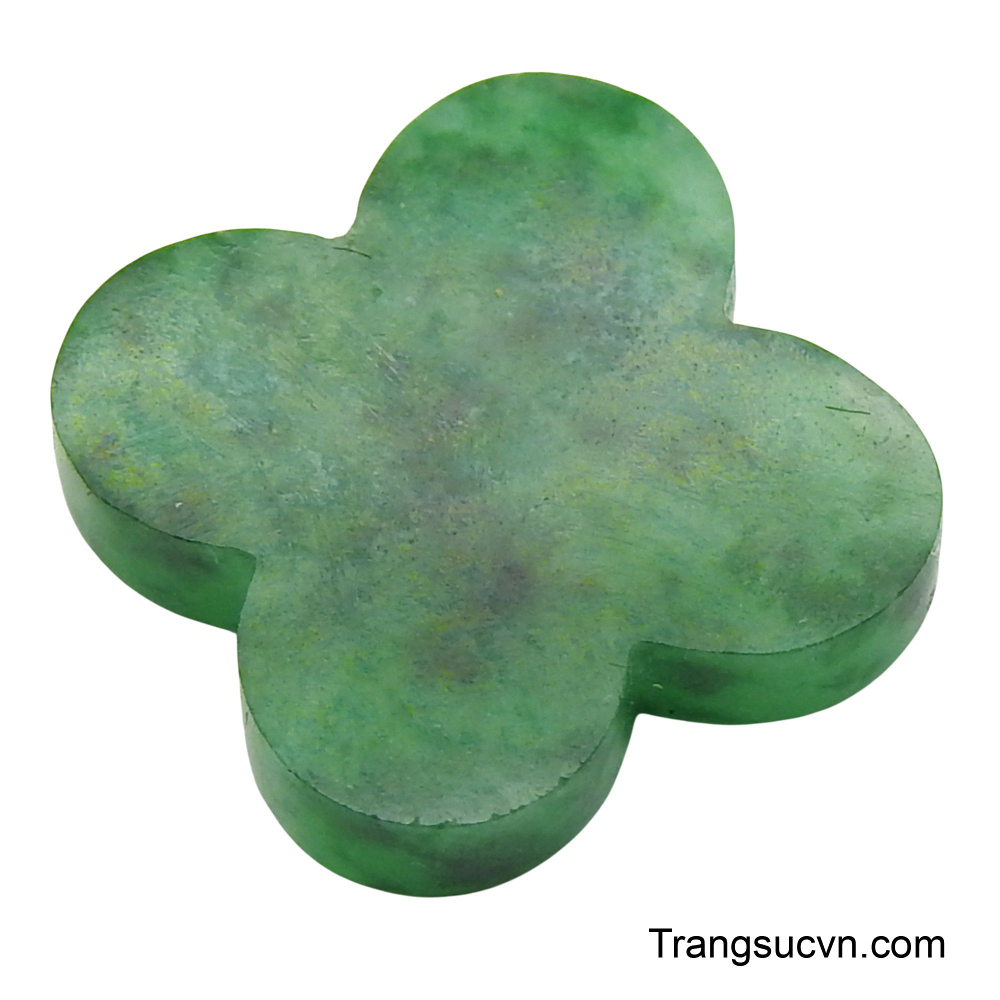 Mặt ngọc thiên nhiên đẹp với tạo hình cỏ bốn lá trơn, mang một vẻ đẹp tối giản nhưng vẫn đầy ý nghĩa. Viên ngọc có sắc xanh lục bảo tự nhiên, với các vệt màu đậm nhạt độc đáo, thể hiện sự tinh khiết và độ bền của đá quý. Thiết kế trơn phẳng này làm nổi bật chất ngọc và sự trọn vẹn của hình dáng. Đây là sự lựa chọn lý tưởng để gắn vào mặt dây chuyền hoặc hoa tai. Khi được bọc viền vàng hoặc vàng trắng, nó sẽ trở thành một món trang sức phong thủy tinh tế, mang đến may mắn, bình an và sự thịnh vượng cho người đeo.