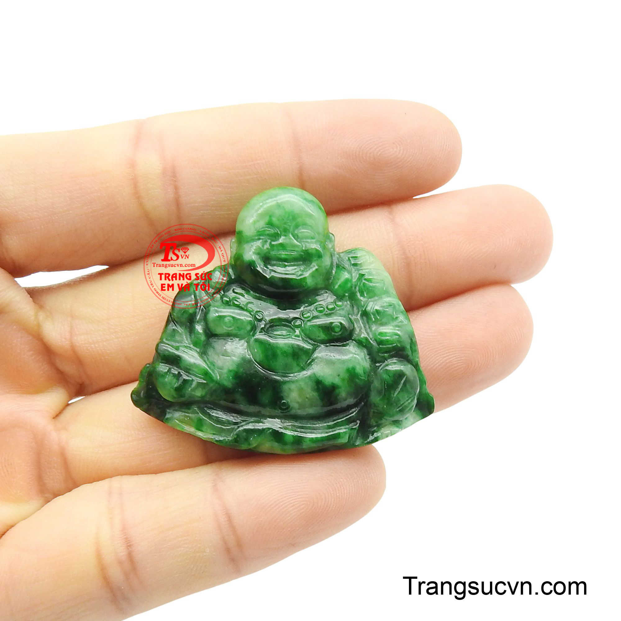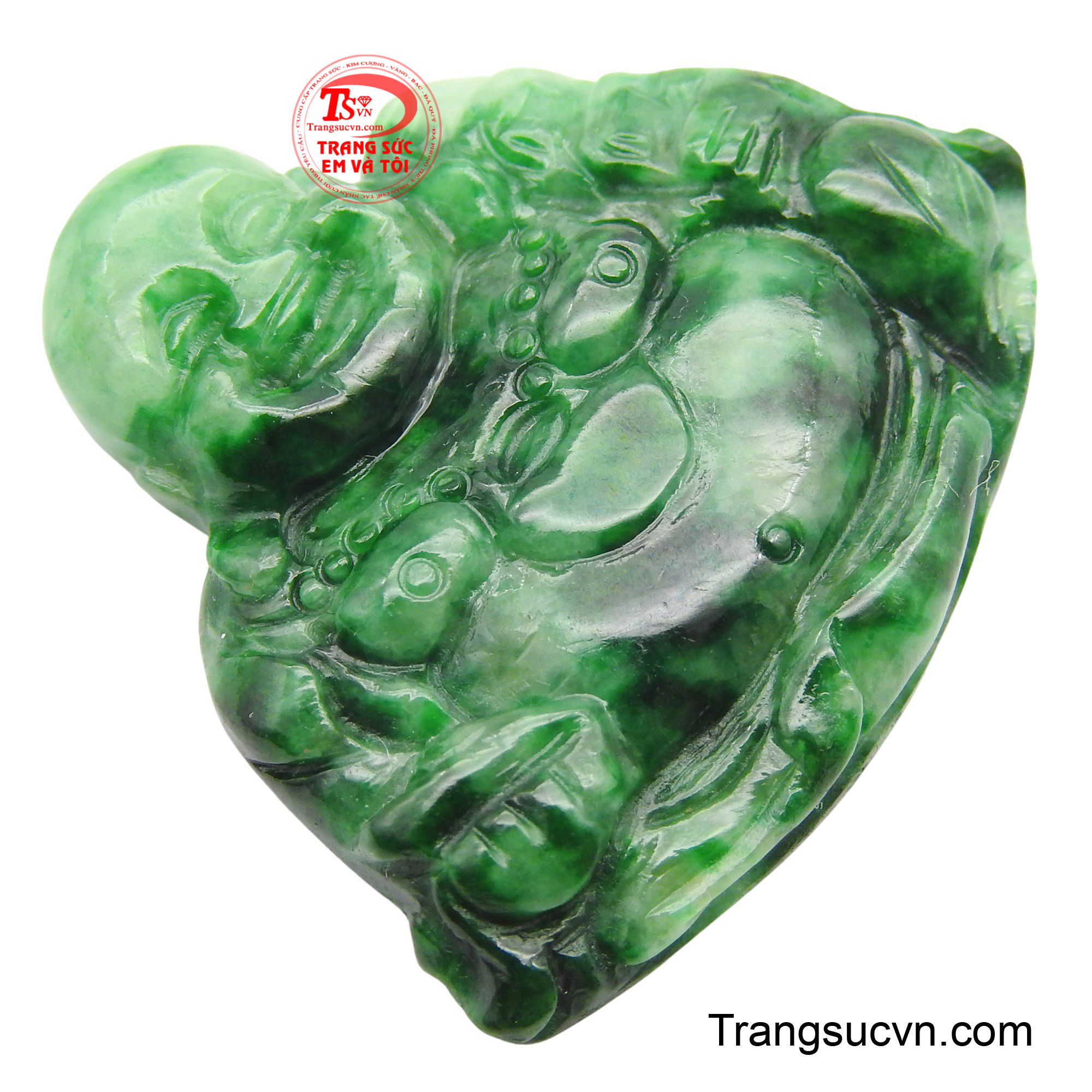 Mặt Di Lặc Ngọc an nhiên được chế tác từ Ngọc Jadeite tự nhiên, màu xanh lục đậm nhạt xen kẽ, viên ngọc mang năng lượng trường thọ.