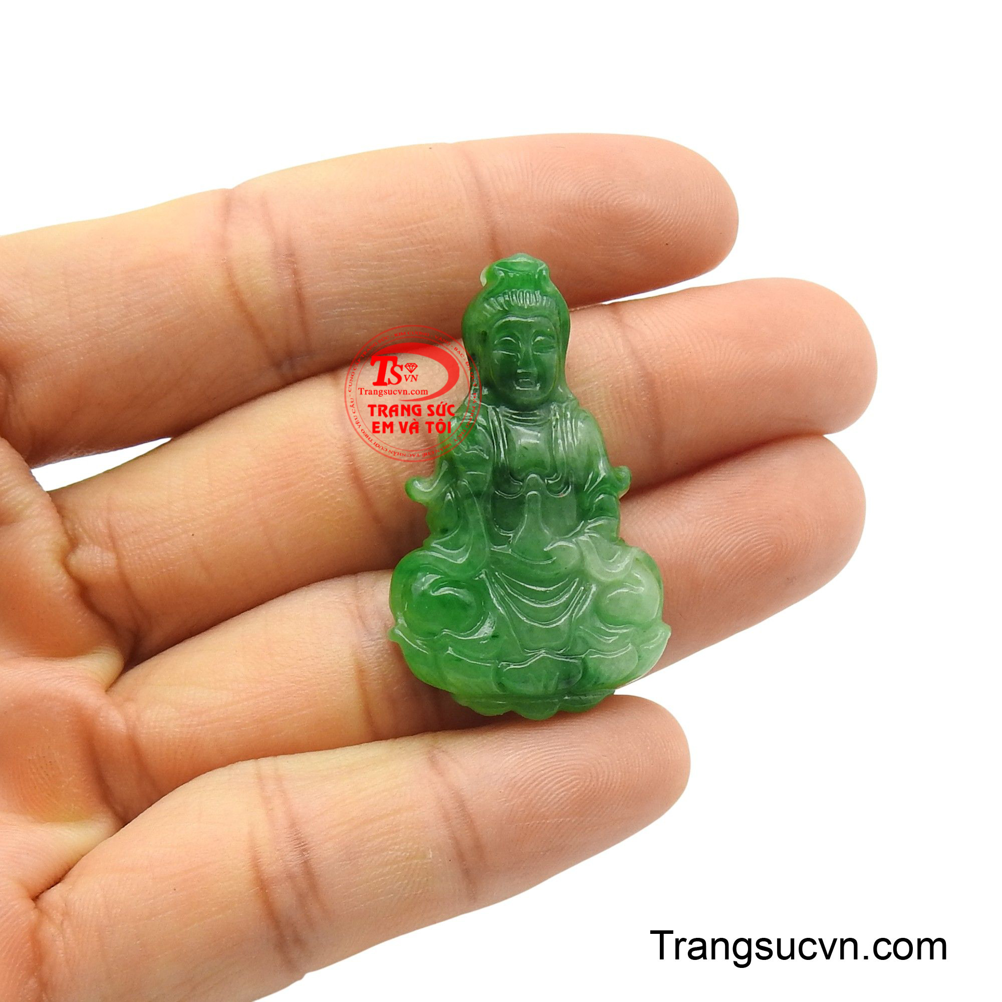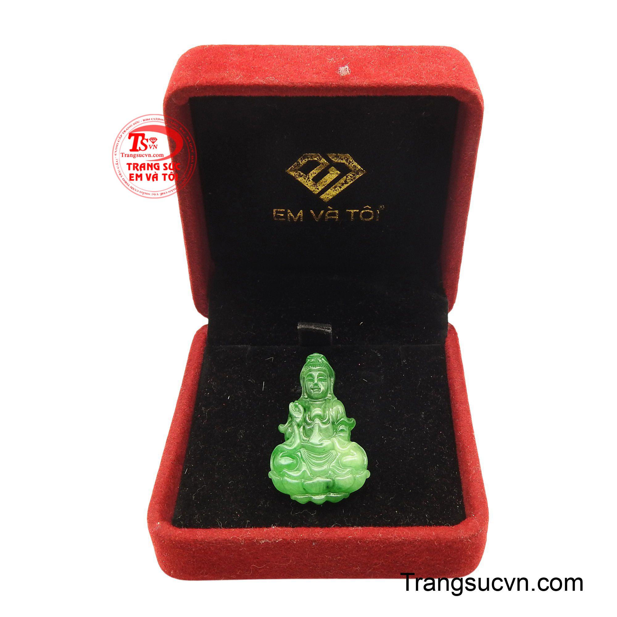 Mặt Phật bà Jadeit an yên được chế tác từ Ngọc Jadeite thiên nhiên, nổi bật với màu xanh lục bảo rực rỡ và những vân đá tự nhiên.