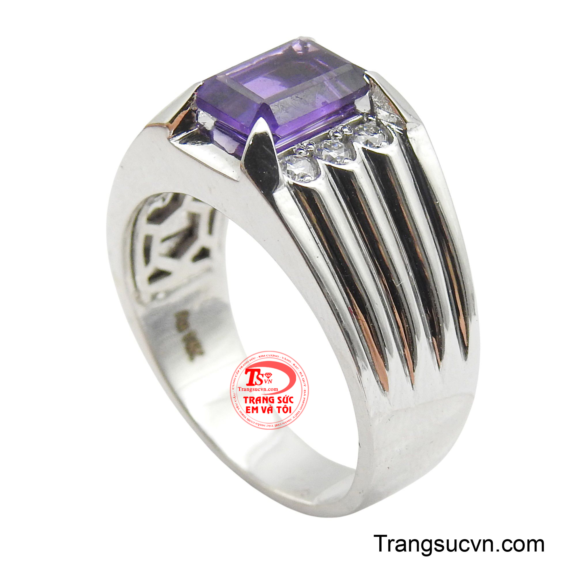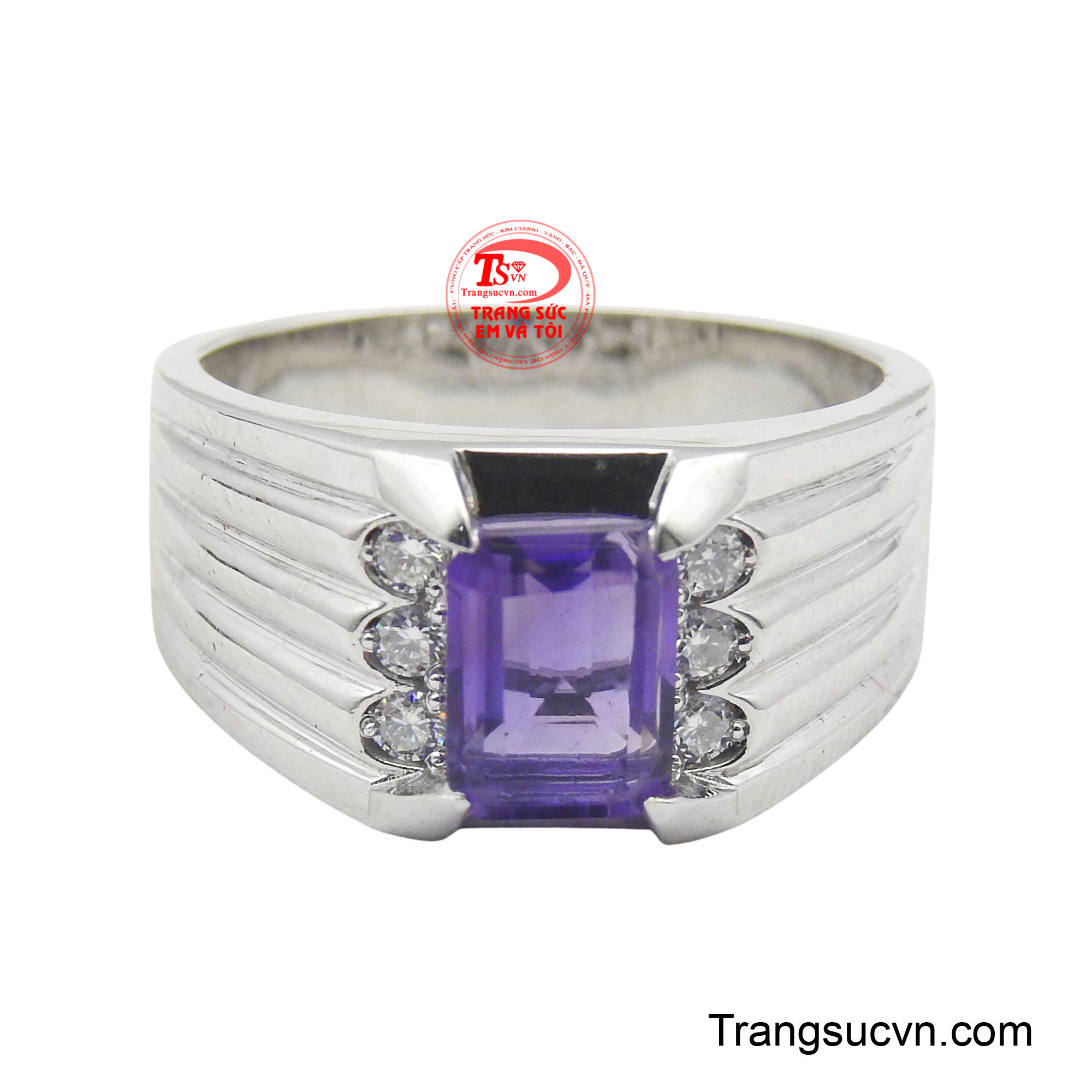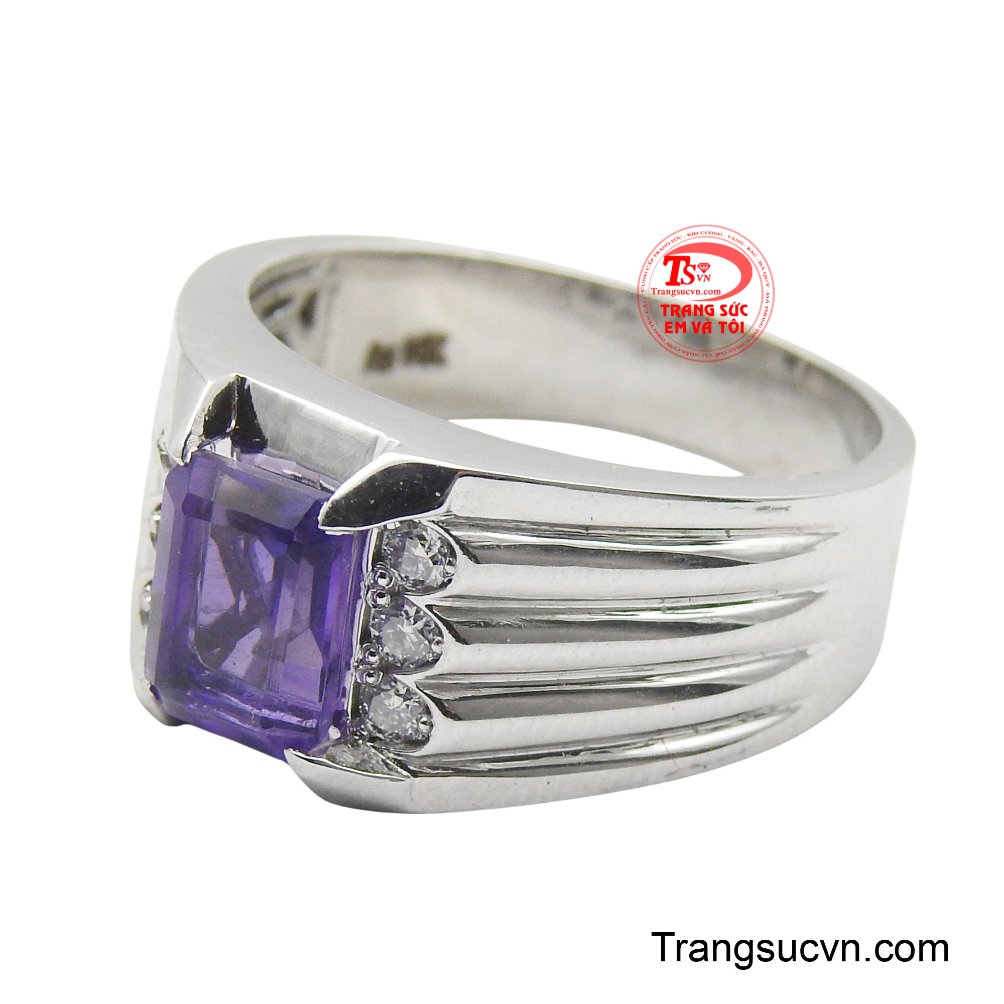 Nhẫn nam Thạch anh tím vàng trắng 14K