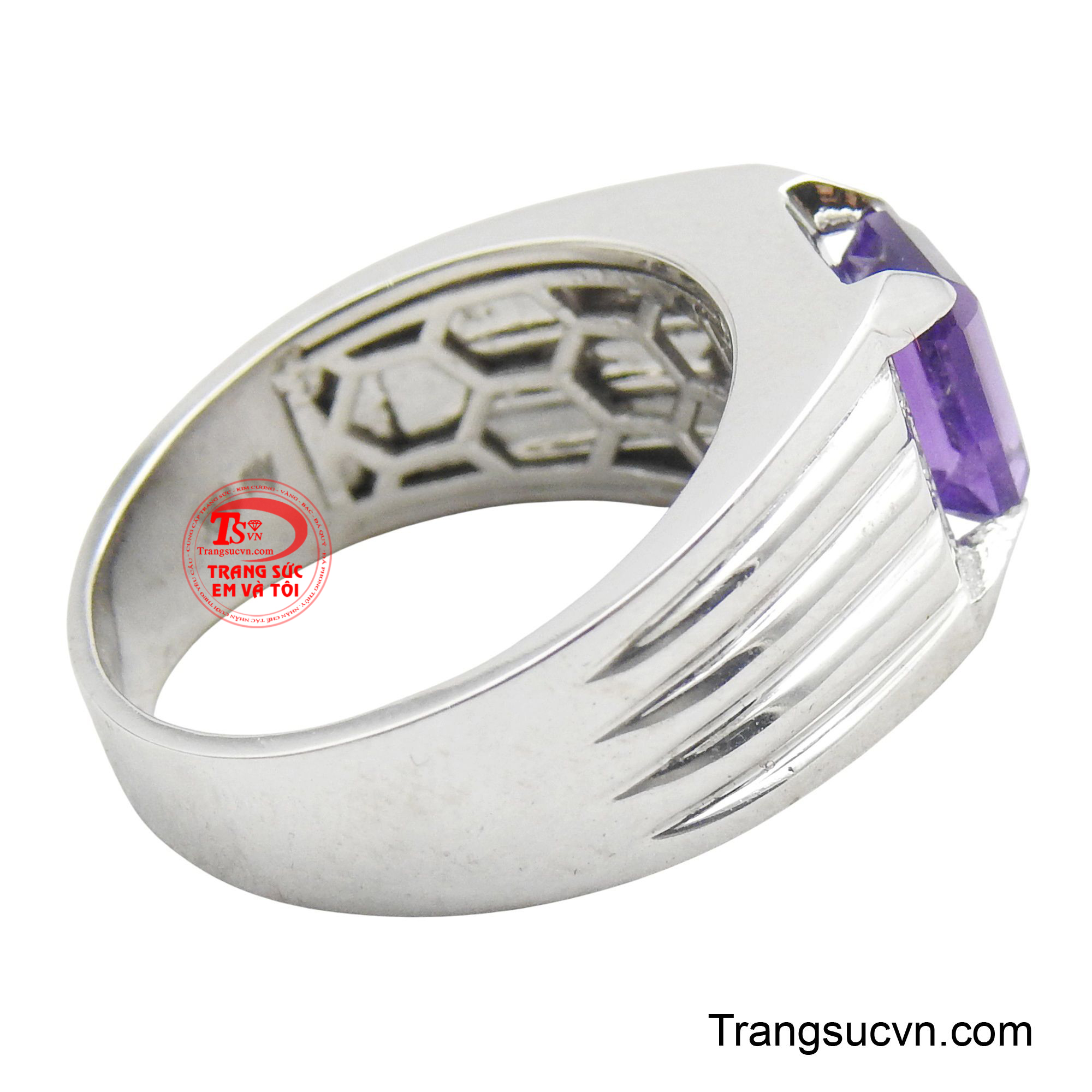 Nhẫn nam Thạch anh tím vàng trắng 14K được chế tác từ vàng trắng 14K sáng bóng, nhẫn có thiết kế mạnh mẽ với các đường kẻ chéo nổi bật trên đai nhẫn, thể hiện sự quyết đoán và hiện đại.
