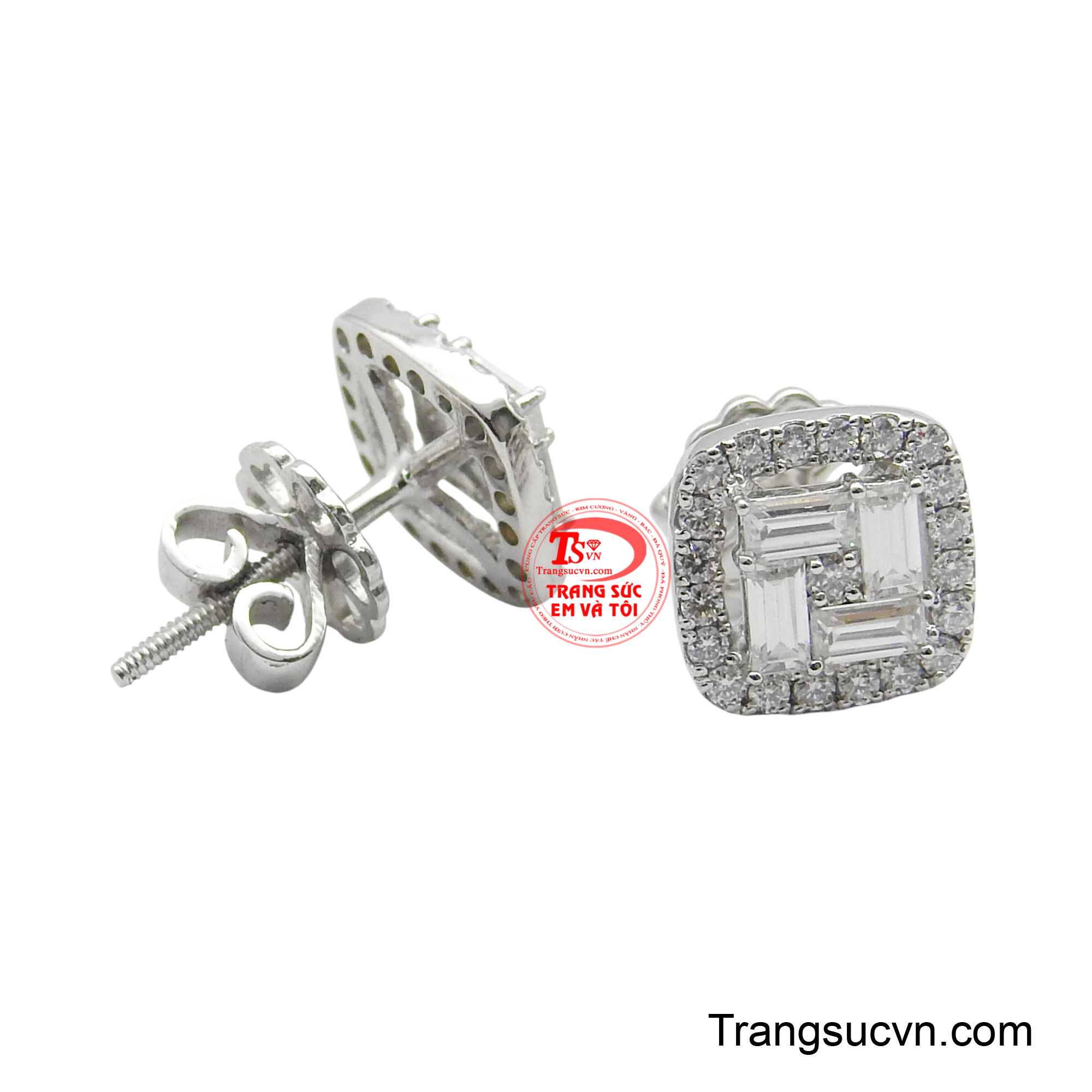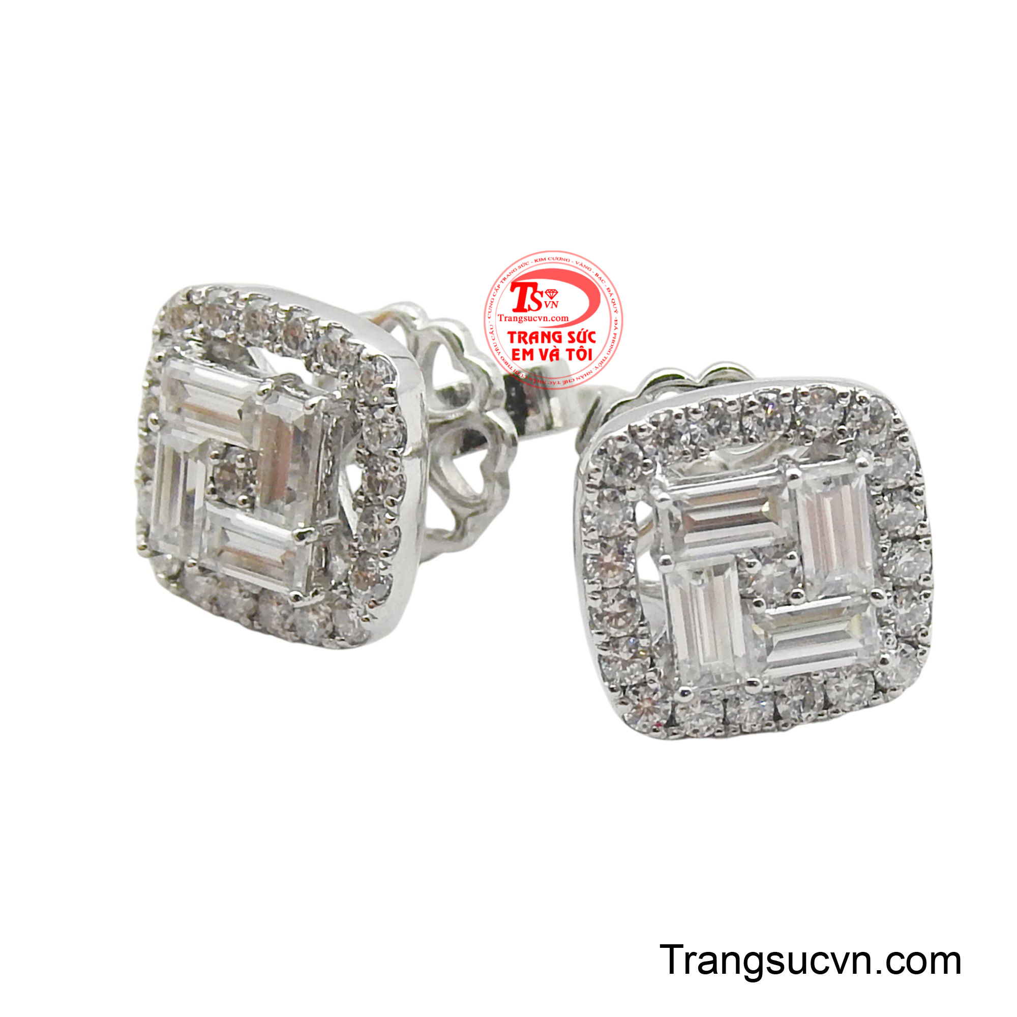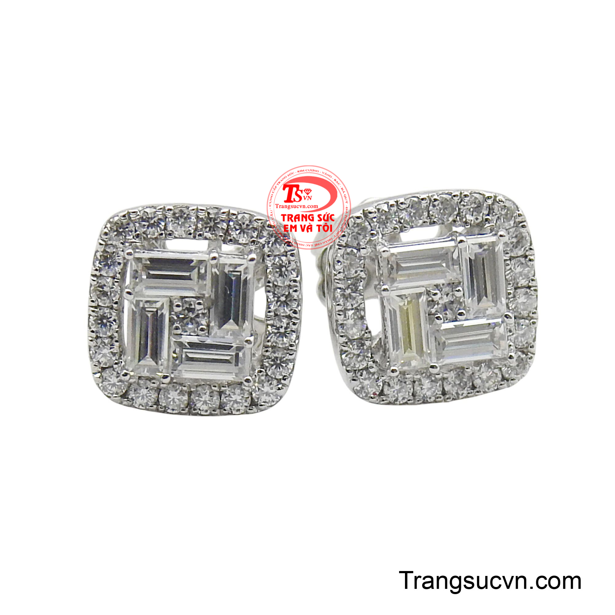 Hoa tai vàng trắng 10K gắn Moisanite là biểu tượng của vẻ đẹp hình học hiện đại và sự lấp lánh vượt thời gian.