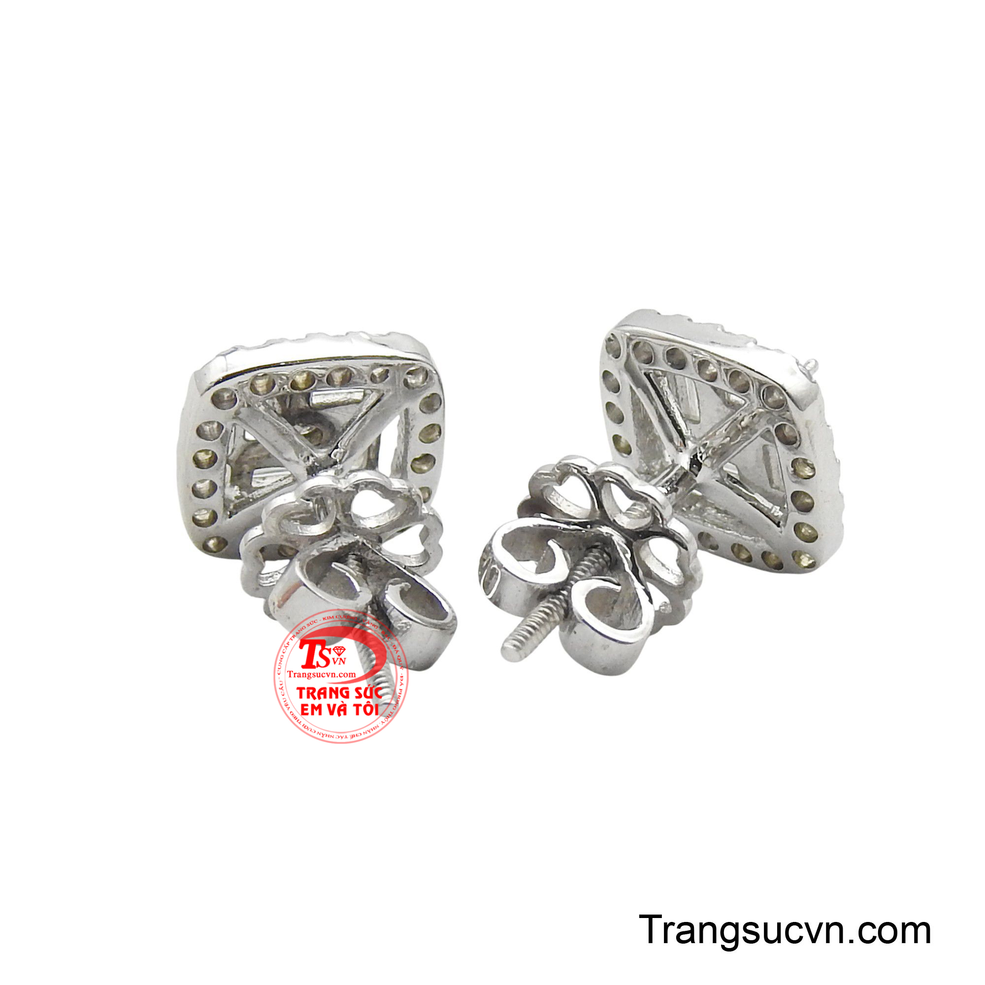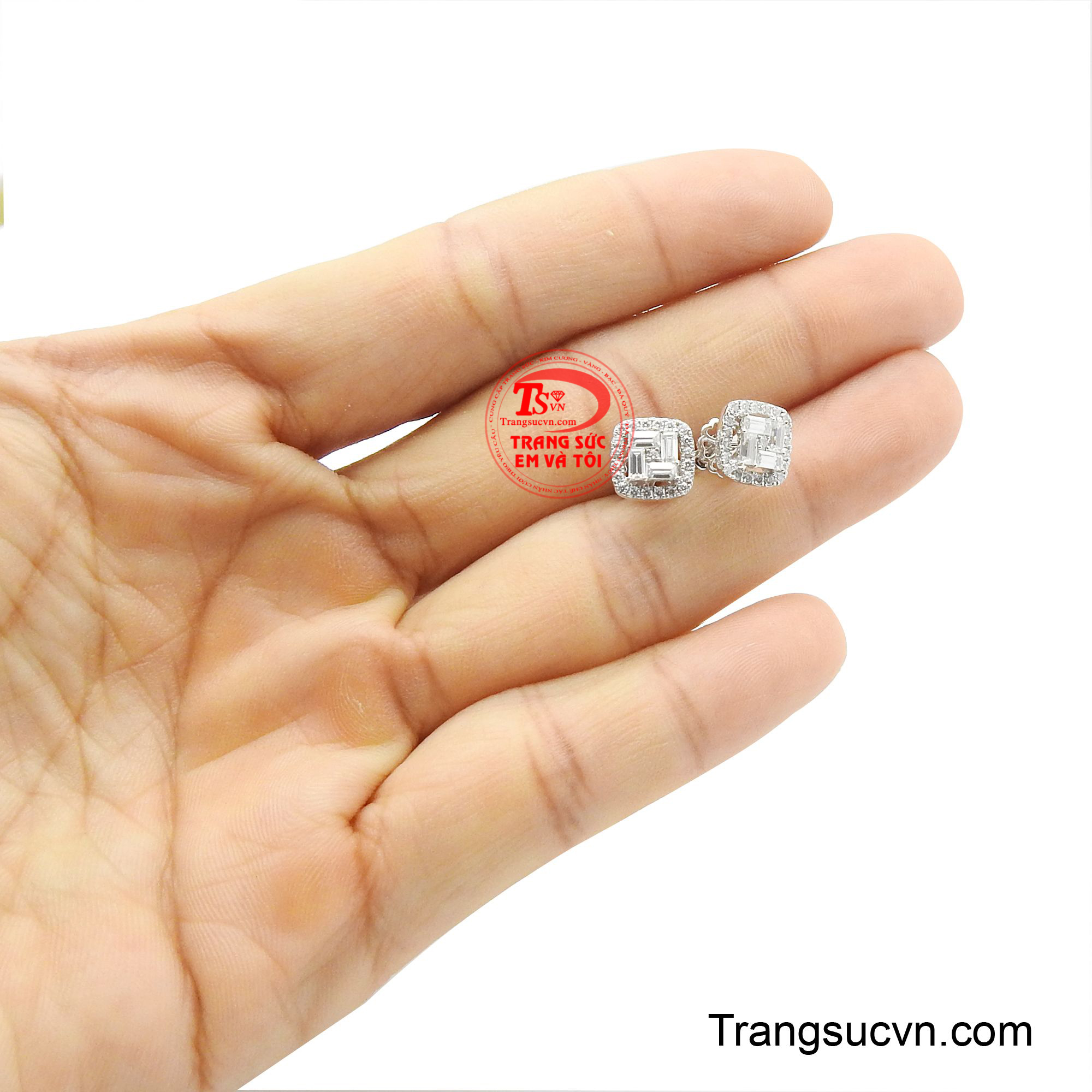 Hoa tai vàng trắng 10K gắn Moisanite là biểu tượng của vẻ đẹp hình học hiện đại và sự lấp lánh vượt thời gian. Viên đá trung tâm được tạo hình vuông vức, ghép lại từ những viên Moissanite được cắt mài khéo léo, tạo nên một họa tiết tương phản ánh sáng đầy thú vị. Lớp viền ngoài đính đá nhỏ ôm trọn khung vuông, tăng thêm sự kiêu sa và bắt mắt cho tổng thể. Đôi hoa tai vàng trắng này là lựa chọn hoàn hảo để tôn vinh phong cách thanh lịch và tinh tế, mang lại ánh sáng rực rỡ cho gương mặt bạn.