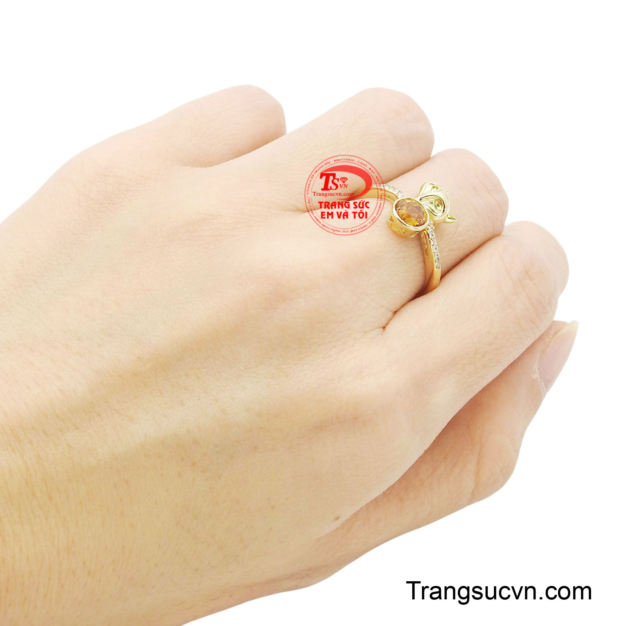 Kiểu chế tác: Nhẫn vàng 14k gắn đá thạch anh vàng, Nhẫn Nữ vàng đảm bảo chất lượng Uy tín, Đeo hợp phong thủy