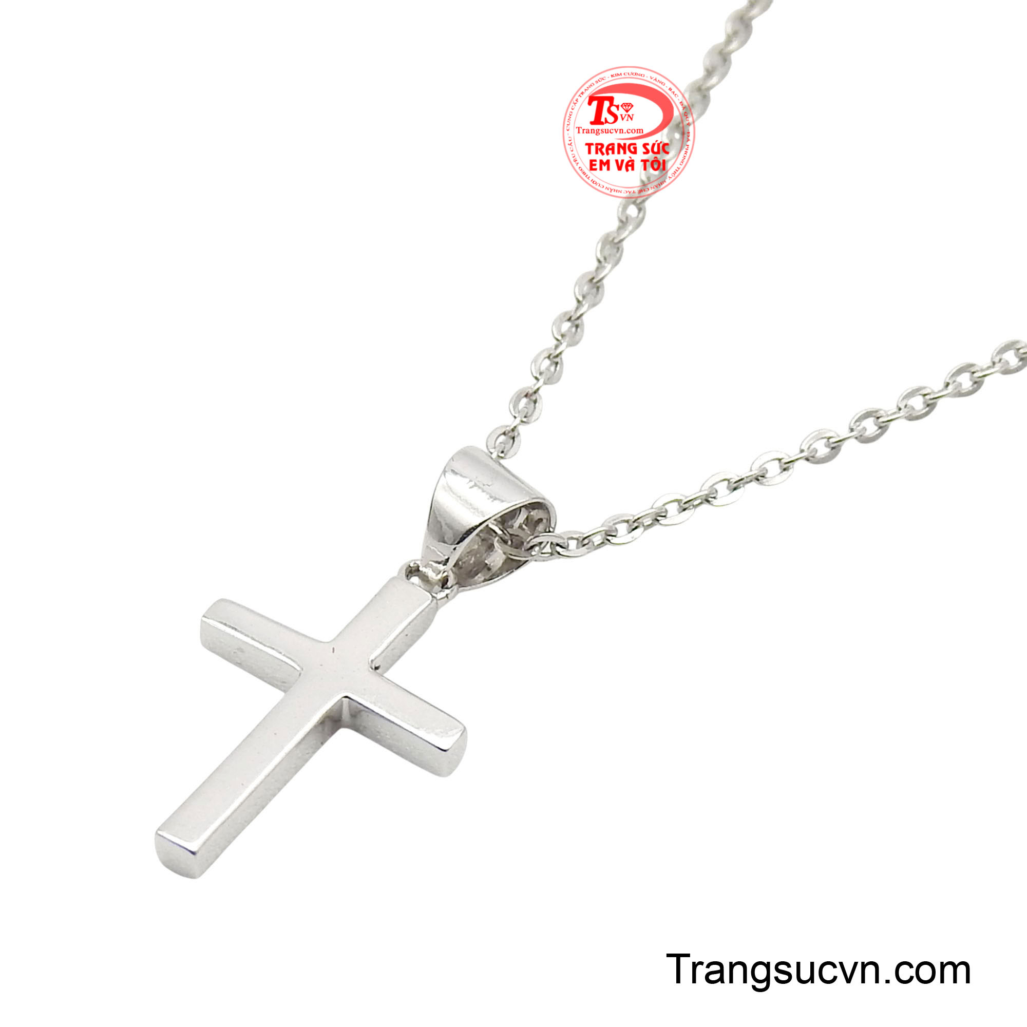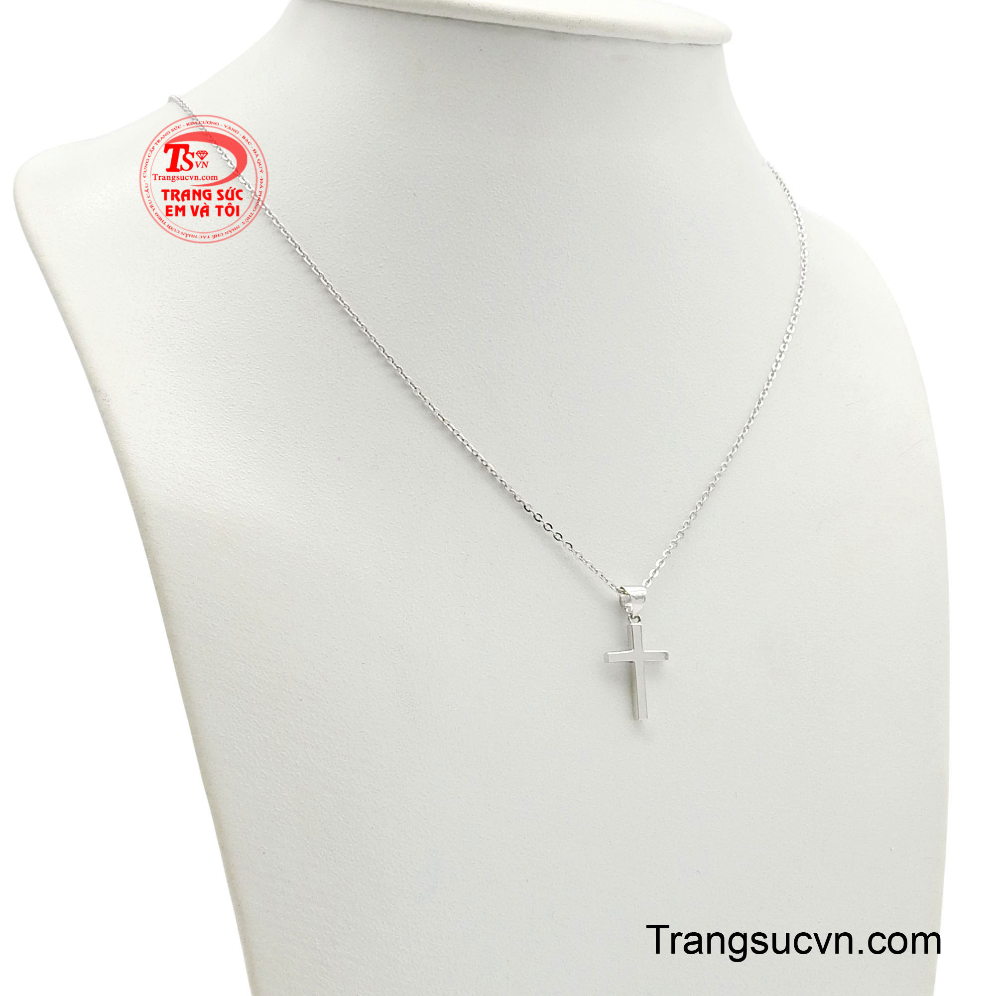 Dây xích mảnh dẻ kết hợp với mặt thánh giá tối giản, được chế tác từ vàng trắng 10k mang lại sự trang nhã và tinh tế khi đeo.