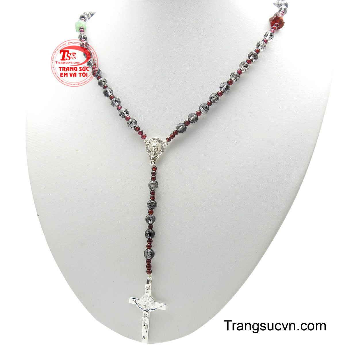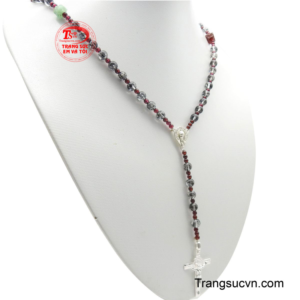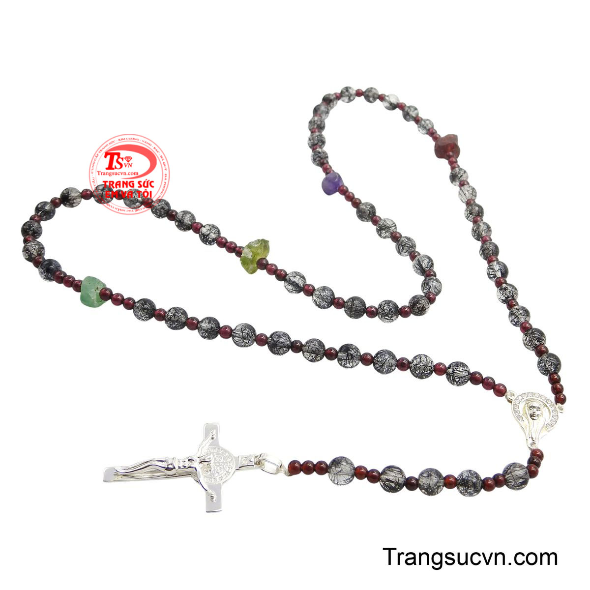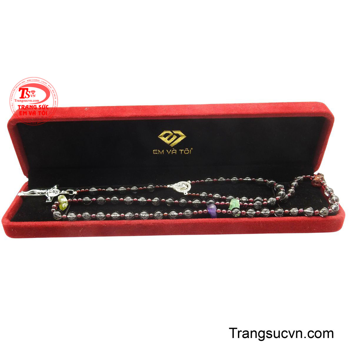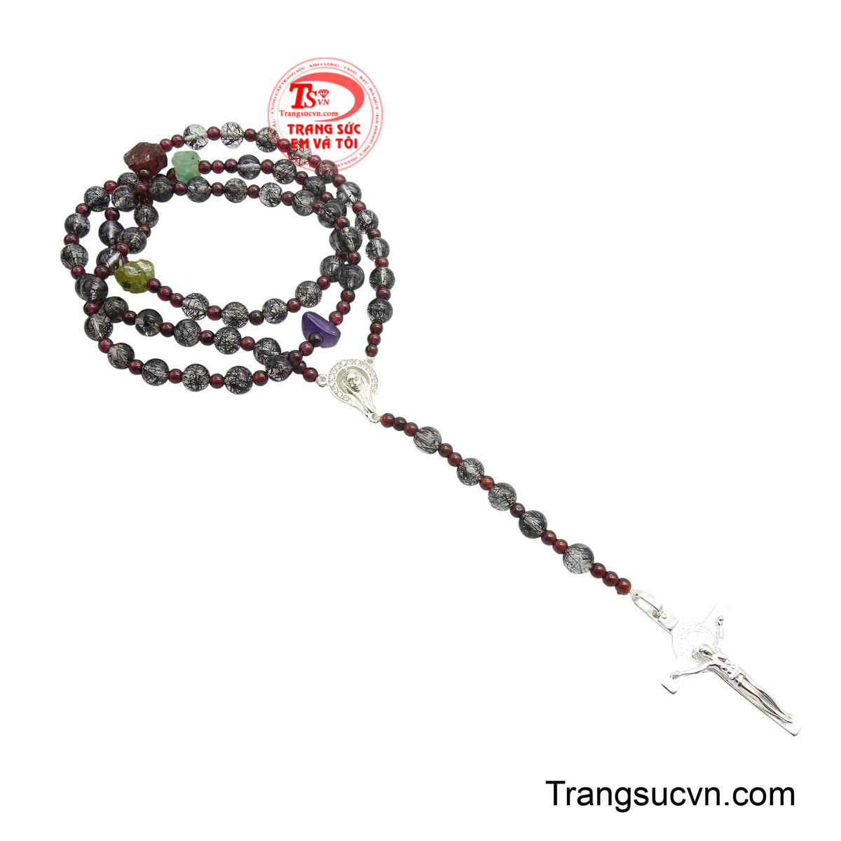Chuỗi tràng hạt thạch anh thiên nhiên là sự kết hợp uy nghiêm giữa vật phẩm tâm linh và năng lượng mạnh mẽ của đá quý. Chuỗi được xâu từ các hạt Thạch Anh Tóc Đen có màu sắc sâu thẳm, với các sợi Rutile đen ánh kim lấp lánh bên trong, tạo nên vẻ đẹp huyền ảo và độc đáo. Đeo chuỗi tràng hạt này có ý nghĩa vô cùng sâu sắc đối với người Công Giáo. Nó thể hiện lòng sùng kính và đức tin vững vàng của người Công giáo vào Chúa Kitô và Đức Mẹ Maria. Đây chính là món quà ý nghĩa để dành tặng cho những người mình yêu thương nhất là đối với người theo đạo Thiên Chúa.