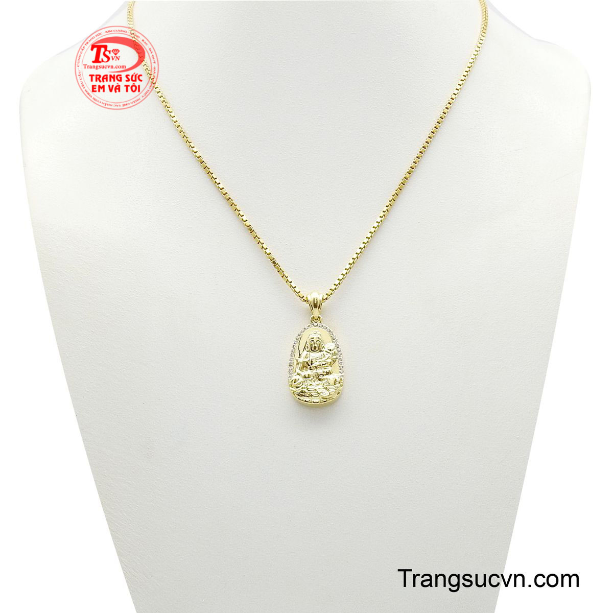 Bộ mặt dây bản mệnh Phổ Hiền Bồ Tát được chạm khắc tinh xảo hình ảnh vị phật Phổ Hiền Bồ Tát trên nền chất liệu vàng 18k cao cấp. Phổ Hiền Bồ Tát là một trong 8 vị Phật bản mệnh, Ngài đại diện bảo hộ cho người tuổi Thìn và tuổi Tỵ. Người được Phổ Hiền Bồ Tát bảo hộ sẽ luôn được hóa giải vận hạn, giảm bớt tai ương, tăng cường sức khỏe và sự tập trung, đồng thời bảo vệ khỏi tà khí và mang lại sự thuận lợi trong sự nghiệp, cuộc sống. Ngoài ra, Ngài còn giúp cho người tuổi Thìn và Tỵ có sự nghiệp hanh thông, công danh thuận lợi, tài lộc ngày càng vượng phát.