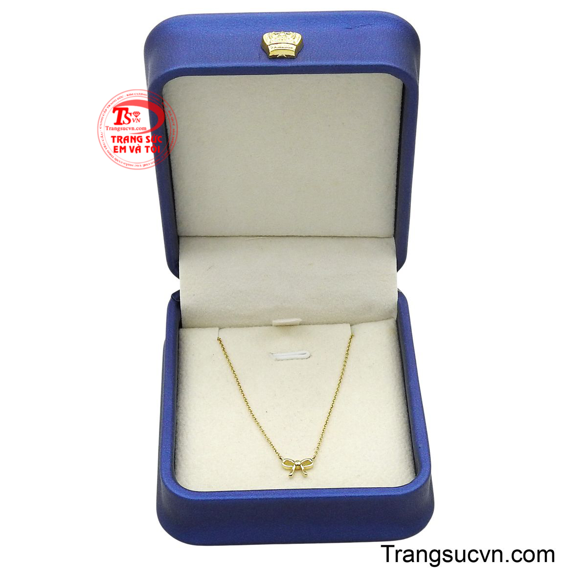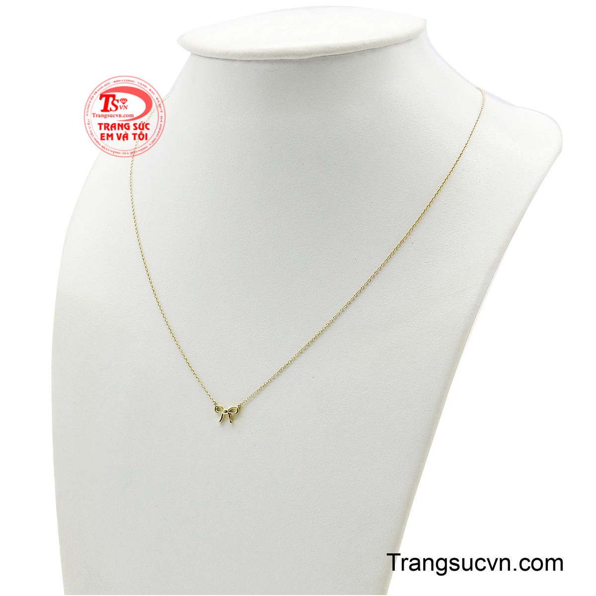 Dây được chế tác từ vàng 18k mảnh mai, với mặt charm hình chiếc nơ nhỏ xinh xắn ở trung tâm, tạo nên sự duyên dáng và nữ tính tuyệt đối.