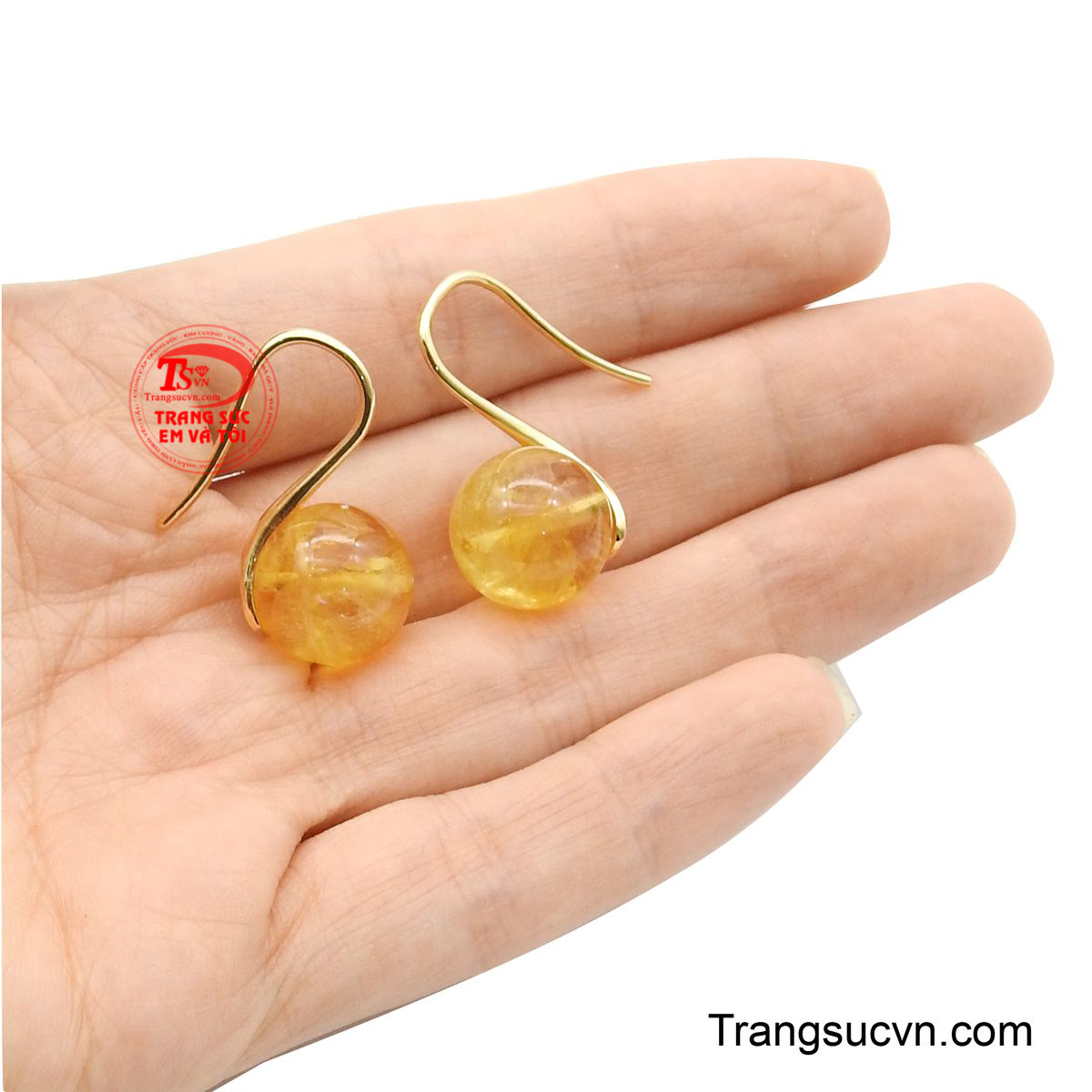 - Vẻ đẹp rực rỡ: Thạch anh vàng có màu vàng tươi sáng, lấp lánh, mang đến vẻ đẹp rực rỡ và thu hút cho đôi hoa tai. Sự kết hợp giữa thạch anh vàng và vàng 14K tạo nên một món trang sức sang trọng và quý phái.