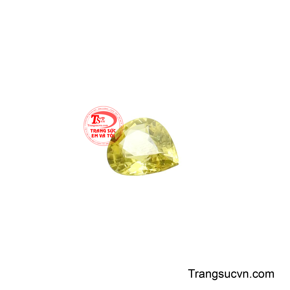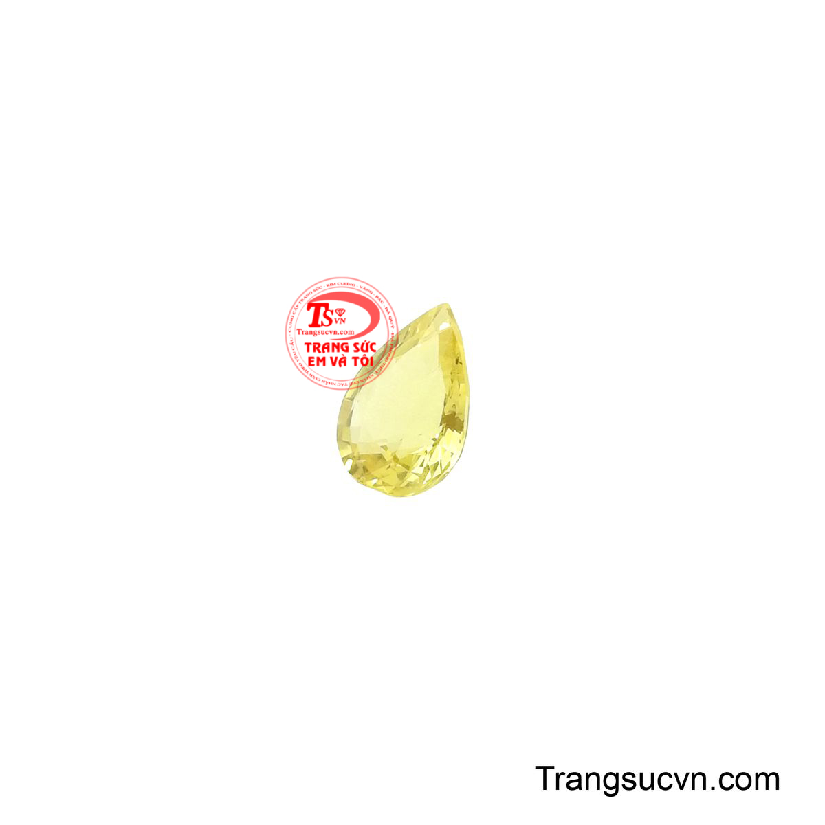 Viên sapphire vàng đẳng cấp là một tuyệt tác tinh khiết từ thiên nhiên, với kiểu hình giọt nước hoàn hảo, phô diễn sự lấp lánh và chiều sâu rực rỡ.