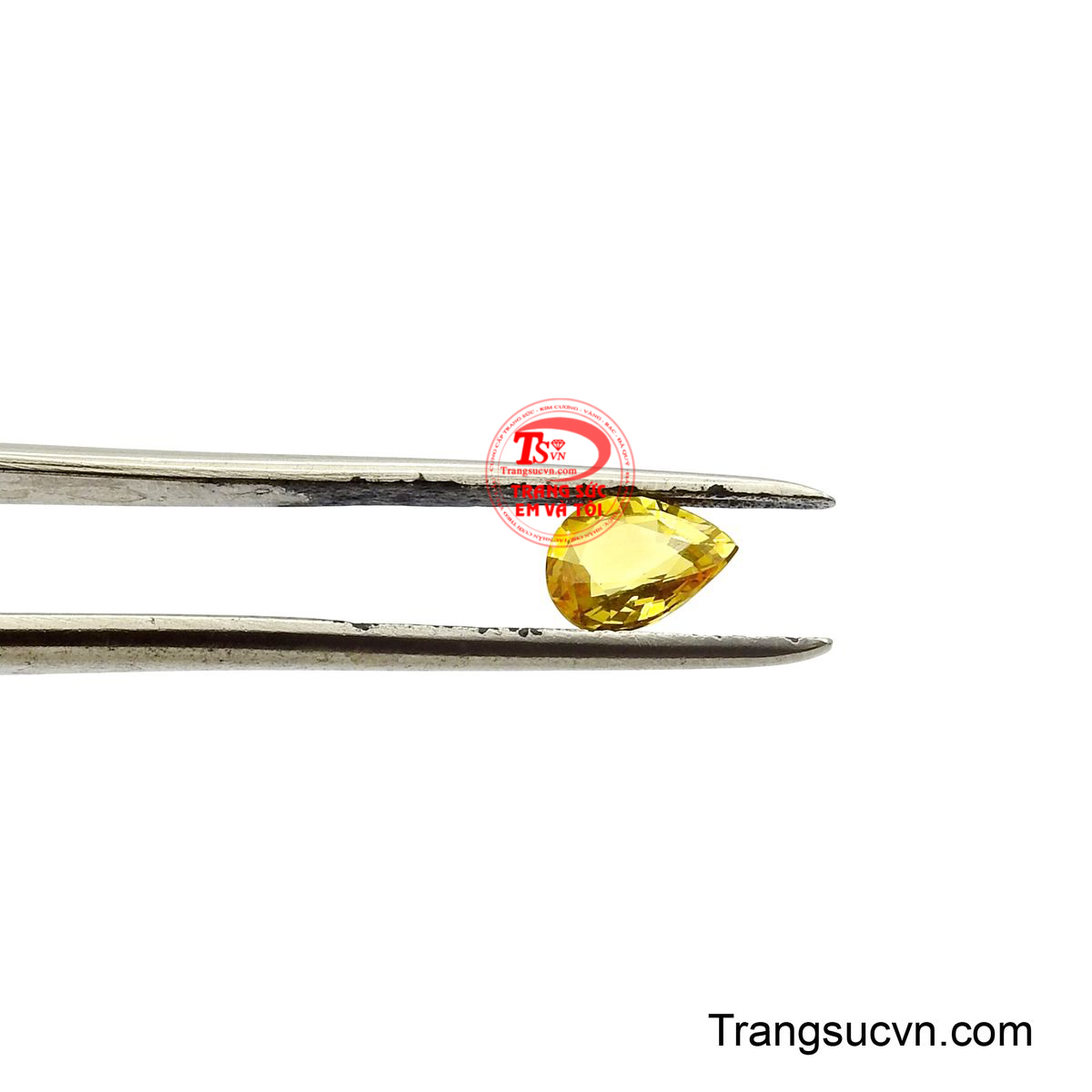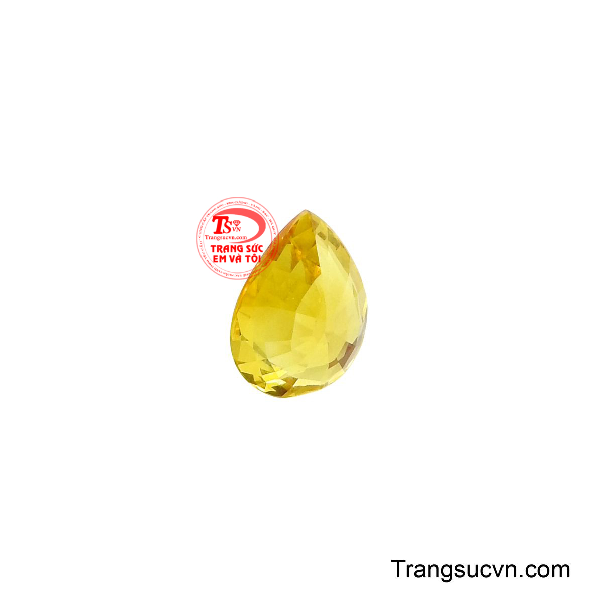 Viên sapphire vàng trẻ trung nổi bật với sắc vàng tươi sáng, mang lại cảm giác trẻ trung và đầy sức sống, khác biệt hoàn toàn so với những sắc thái trầm lắng khác. Với kiểu cắt giọt nước độc đáo, viên đá sở hữu các mặt cắt facet lấp lánh, tạo nên hiệu ứng thị giác năng động và hiện đại tuyệt đối. Viên Sapphire rực rỡ này rất lý tưởng để chế tác thành mặt dây chuyền với thiết kế khung mở, hoặc nhẫn đeo ngón út thời thượng, giúp người đeo thể hiện cá tính phóng khoáng và tinh thần lạc quan. Đây là lựa chọn hoàn hảo để thêm một chút ánh nắng và may mắn vào phong cách hàng ngày, tạo nên sự khác biệt đầy khí chất.
