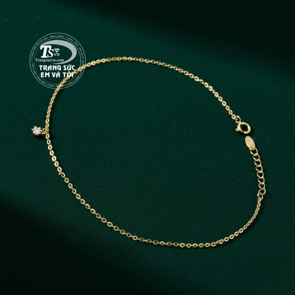 Lắc chân thiết kế đơn giản tôn vinh vẻ đẹp tối giản và tinh tế. Với thiết kế dây chuyền mảnh mai, nó khẽ khàng ôm lấy cổ chân, tạo cảm giác nhẹ nhàng và phóng khoáng. Điểm nhấn duy nhất là một viên đá CZ nhỏ xinh lấp lánh, giống như một ngôi sao nhỏ đậu trên bầu trời đêm, thu hút mọi ánh nhìn một cách kín đáo. Chiếc lắc này hoàn hảo cho những cô nàng yêu thích sự thanh lịch, không phô trương nhưng vẫn muốn tạo ấn tượng sâu sắc. Nó là phụ kiện lý tưởng để đồng hành cùng bạn trong những buổi dạo chơi thảnh thơi hay những khoảnh khắc đời thường, thêm chút ánh kim rạng rỡ cho mỗi bước đi.