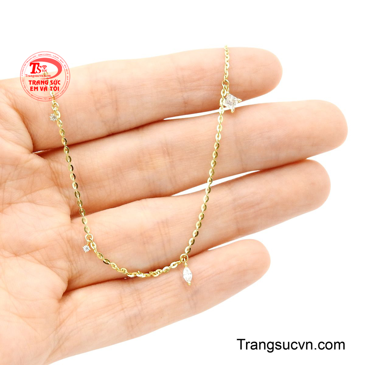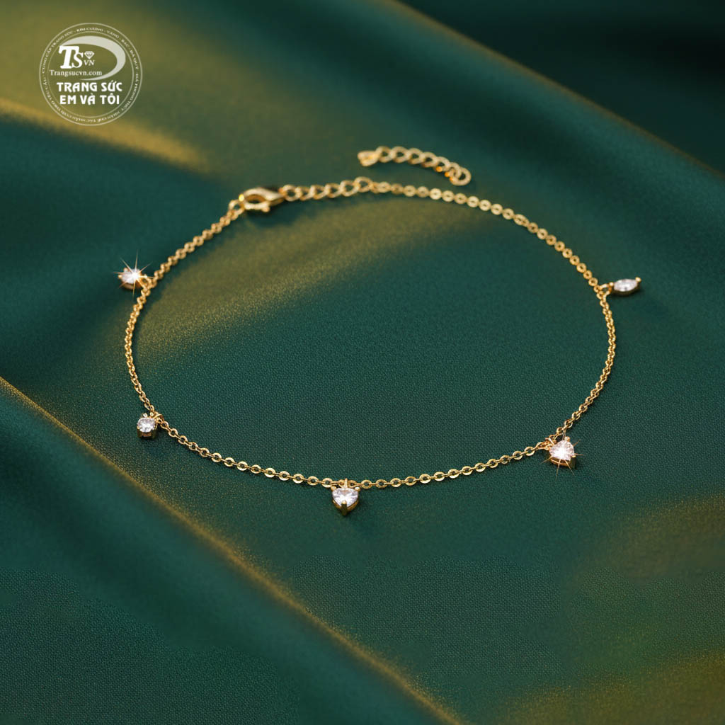 Mỗi viên đá nhỏ lấp lánh như giọt sương mai, phản chiếu ánh sáng dịu dàng, tạo nên điểm nhấn khó quên trên cổ chân ngọc ngà.