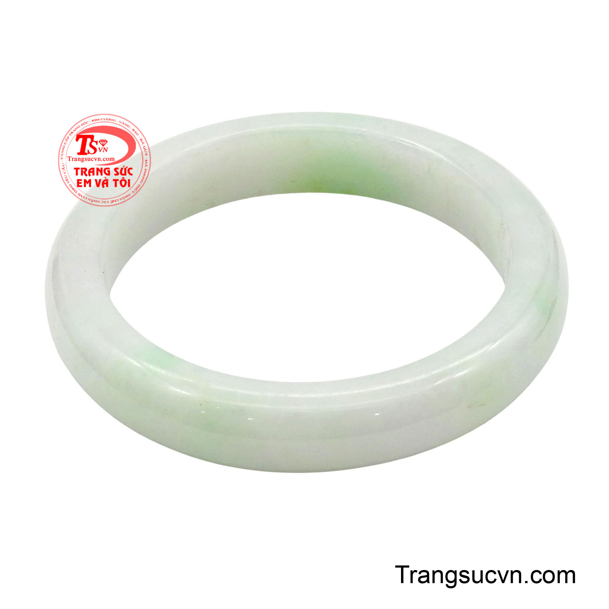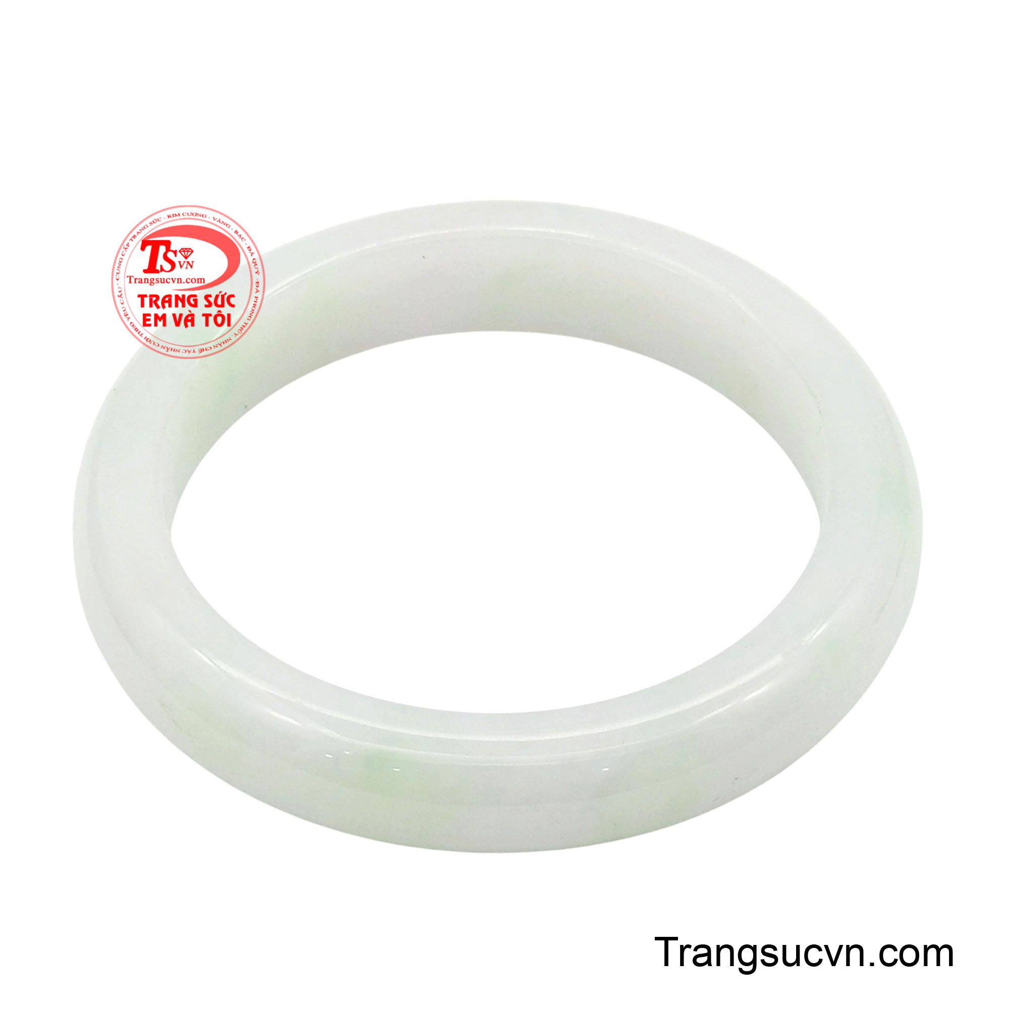 Vòng Ngọc Tuýp A Sương Tinh Khiết tựa như một dải mây lành khẽ buông xuống lòng bàn tay, mang theo vẻ đẹp thanh khiết đến mức tưởng chừng có thể nghe được hơi thở trong trẻo của thiên nhiên. Màu trắng xanh lục phớt xám của chiếc vòng không hẳn là một gam màu cố định, mà giống như lớp sương mỏng đầu ngày dịu nhẹ, huyền ảo, thay đổi sắc thái theo từng góc nhìn. Những đường vân thanh thoát uốn lượn như hơi nước trong trẻo sáng sớm, mềm mại nhưng đầy thần thái, tạo nên cảm giác chiếc vòng đang chậm rãi kể lại những câu chuyện đã ngủ quên hàng triệu năm trong lòng đất. Mỗi nét vân là một dấu ấn độc bản, tinh tế và tinh sạch đến độ người ta có thể cảm nhận được sự an yên tỏa ra từ bên trong.